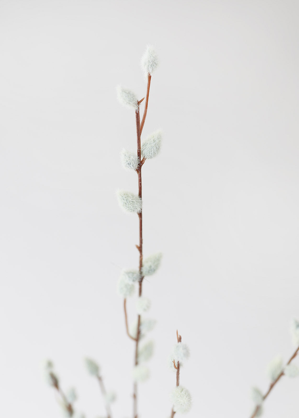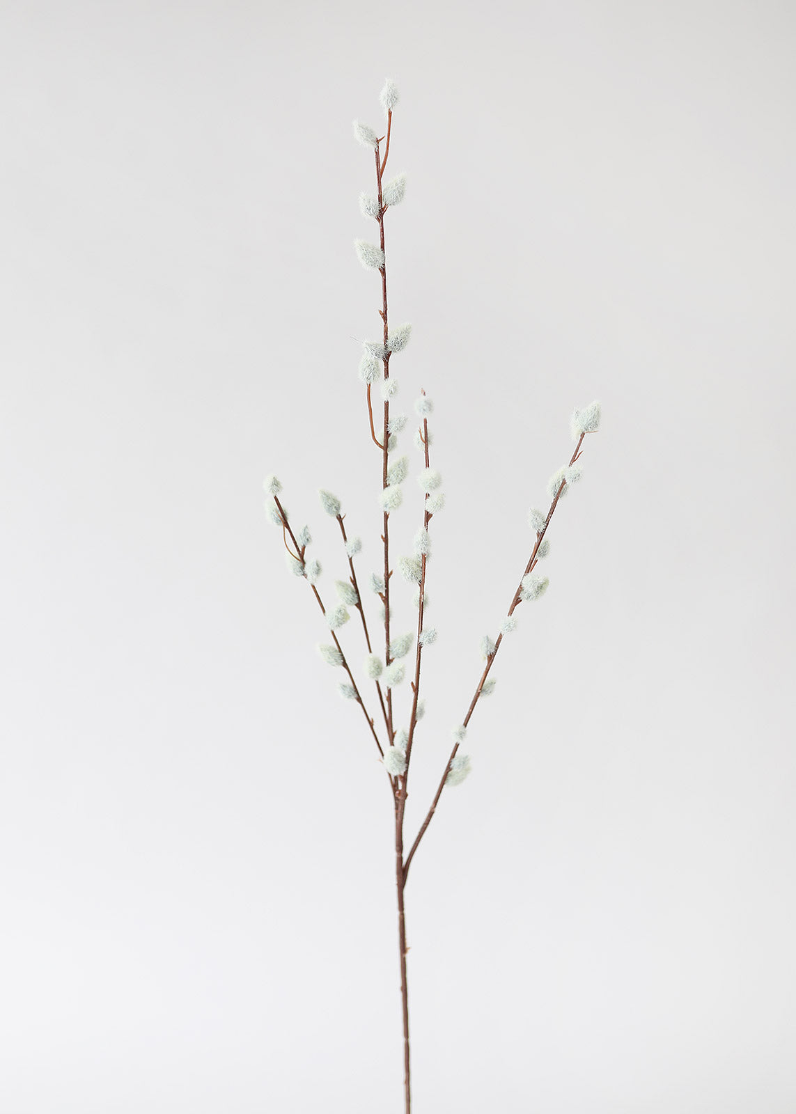 Modern, minimalist, and perfect for any space, these grey artificial pussy willow branches are just what your home decor needs. Style them in a tall branch vase for a simple clean look. These artificial pussy willows feature realistic, fuzzy buds and the fully-wired stem allows for easy shaping to create the look of natural pussy willow banches from every angle.