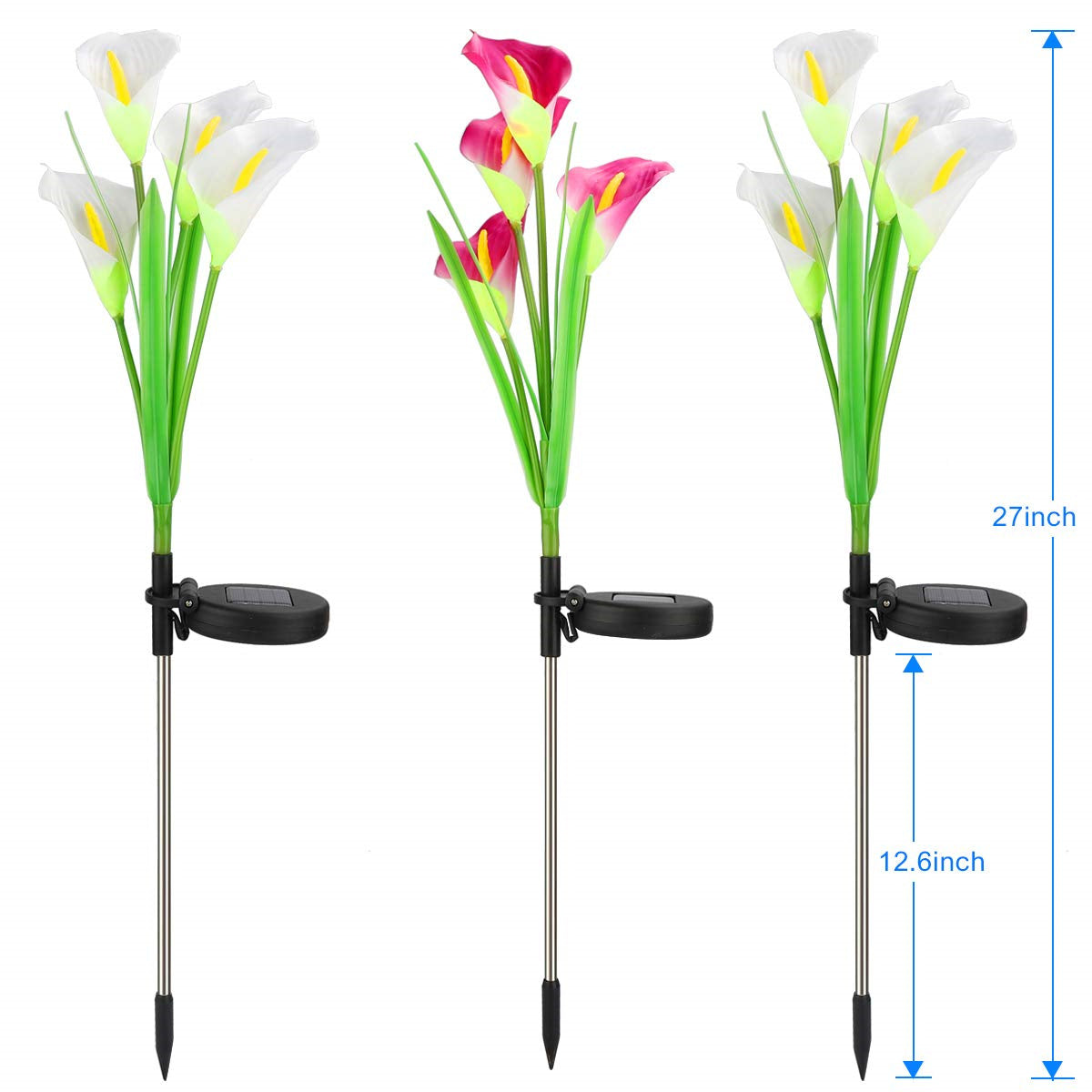3-Pack Solar Flower Lights - 2 x White & 1 x Purple, 12 Lily Flowers