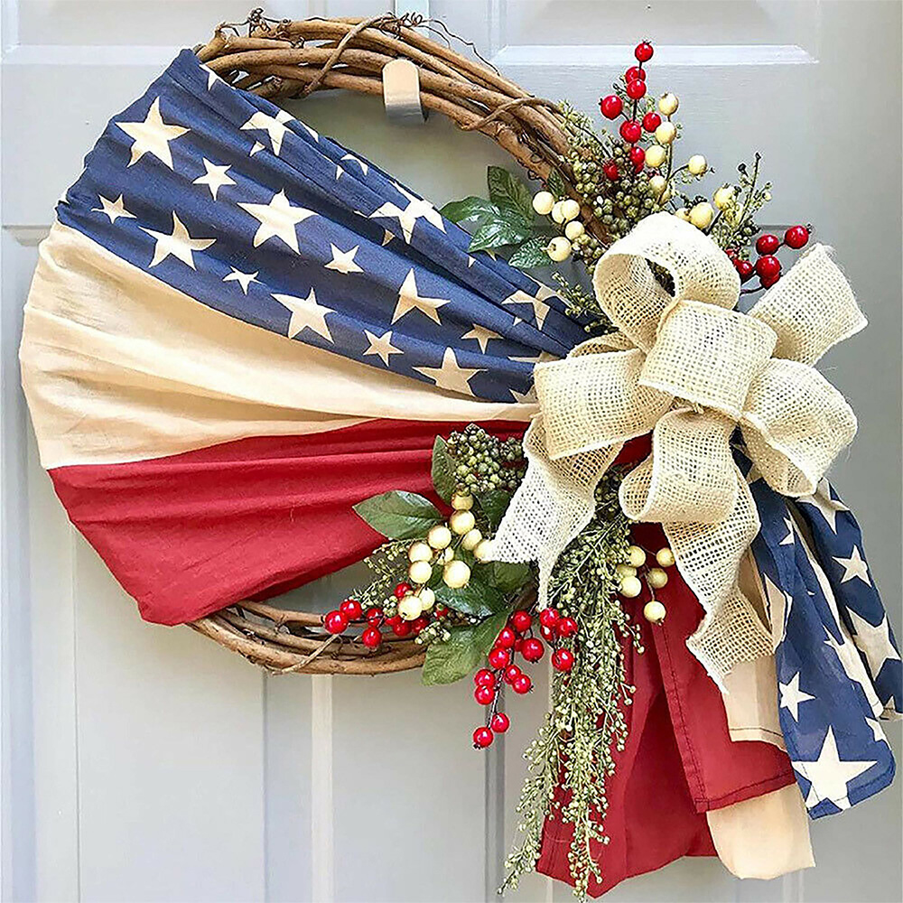 1 * American Independence Day Rattan Simulation Wreath Ornament Door Hanging
