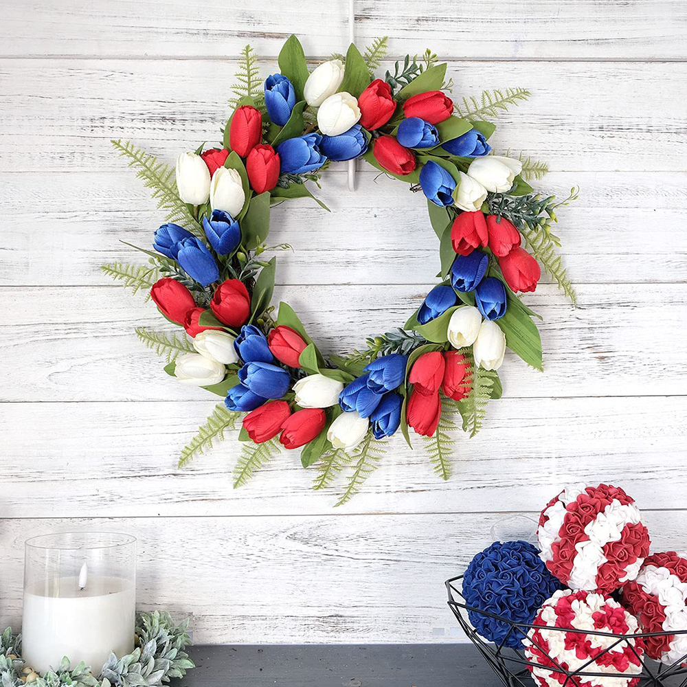 Wreath elements:Red, white and blue tones, the colors of the Stars and Stripes, the atmosphere of Independence Day is full!