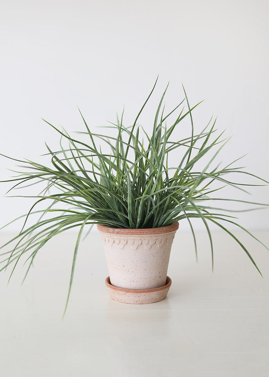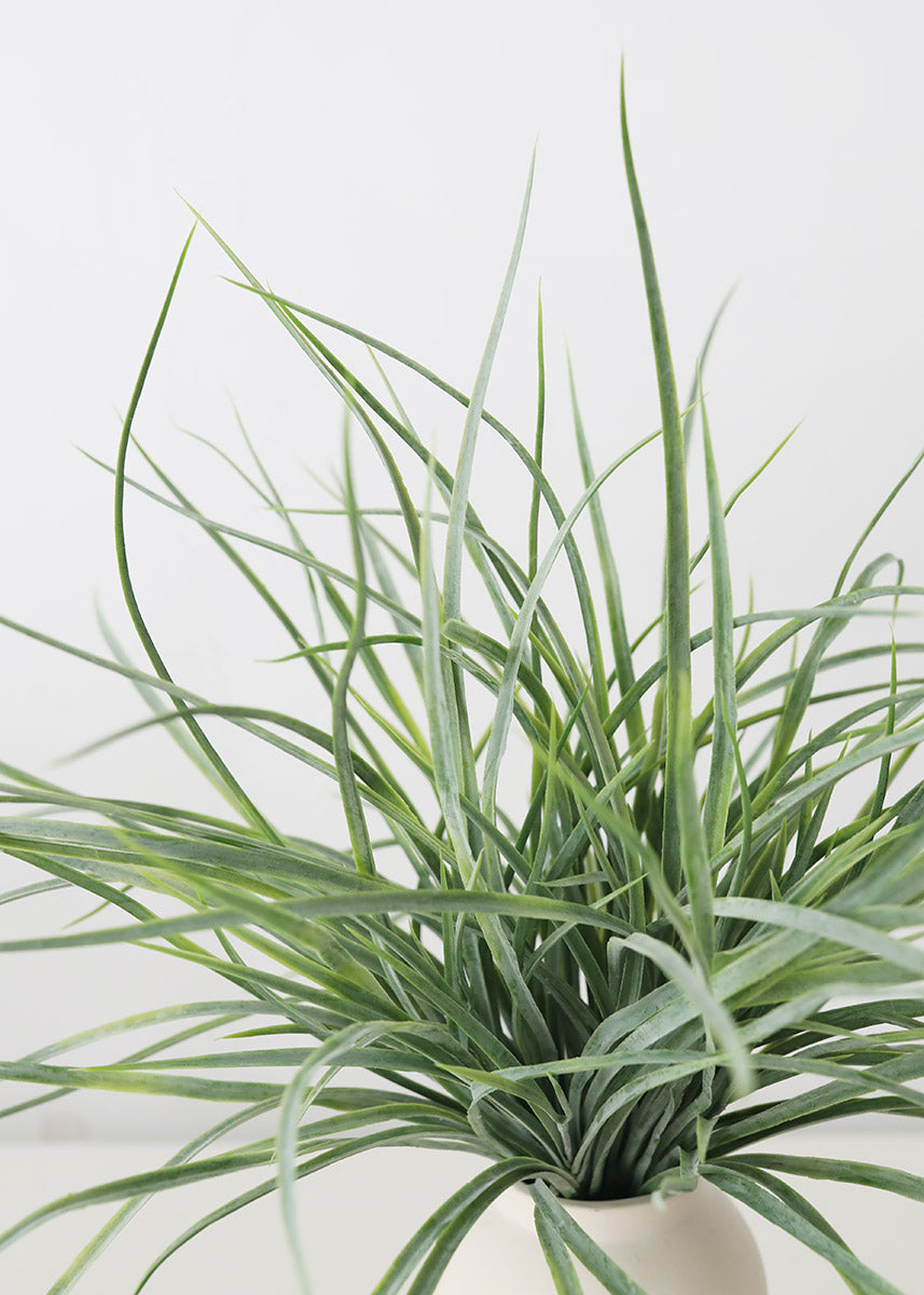 Weather-resistant fake grasses, like this short grass plant in green, perfectly liven up both your indoor spaces and outdoor porch planters. The wild look of this artificial grass is a great way to add dimension.