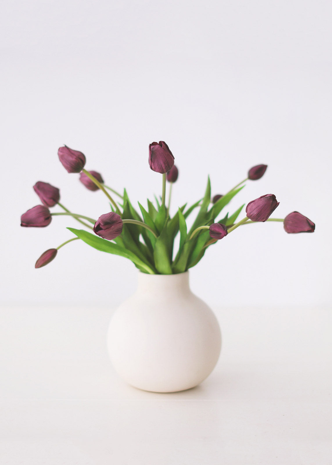 Elevate any space with this bundle of faux purple tulip flowers. The red-based purple will warm up any room or add a special pop of color to any faux floral arrangement. Style alone, or used as an accent in a bouquet, these artificial tulips won't disappoint. The soft rubber petals and greenery offer a nearly-natural feel that makes this tulip bundle even easier to love.