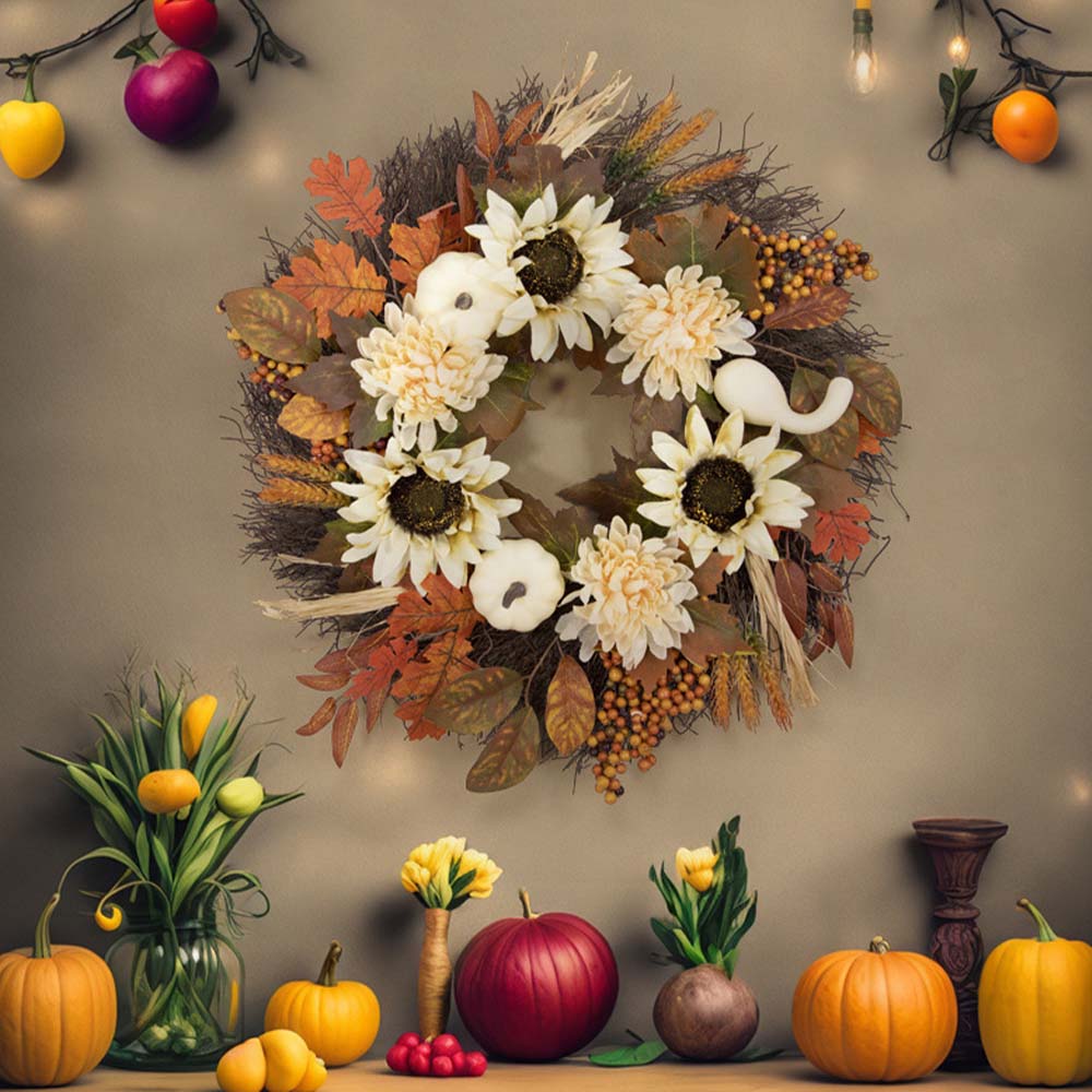 Autumn Thanksgiving White Pumpkin Wreath Sunflower Decoration