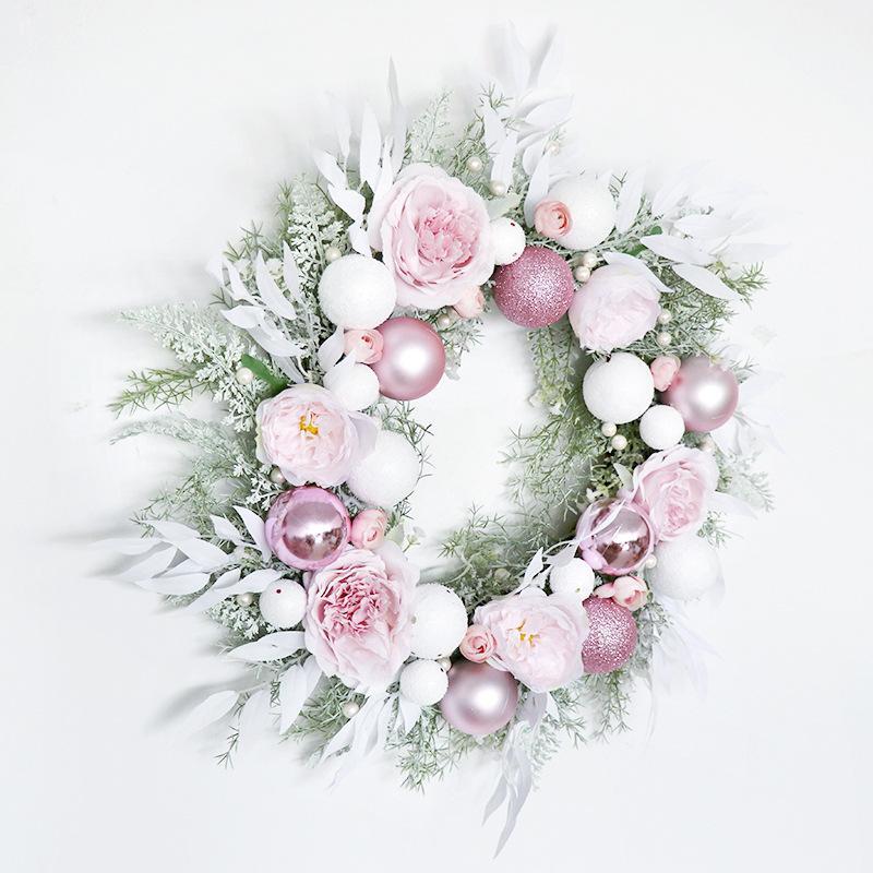🎅The perfect Christmas pink rose and wild berry decoration are perfectly coordinated on the mixed pine needles.