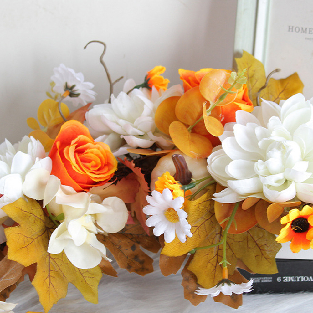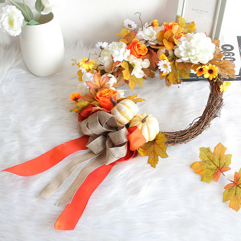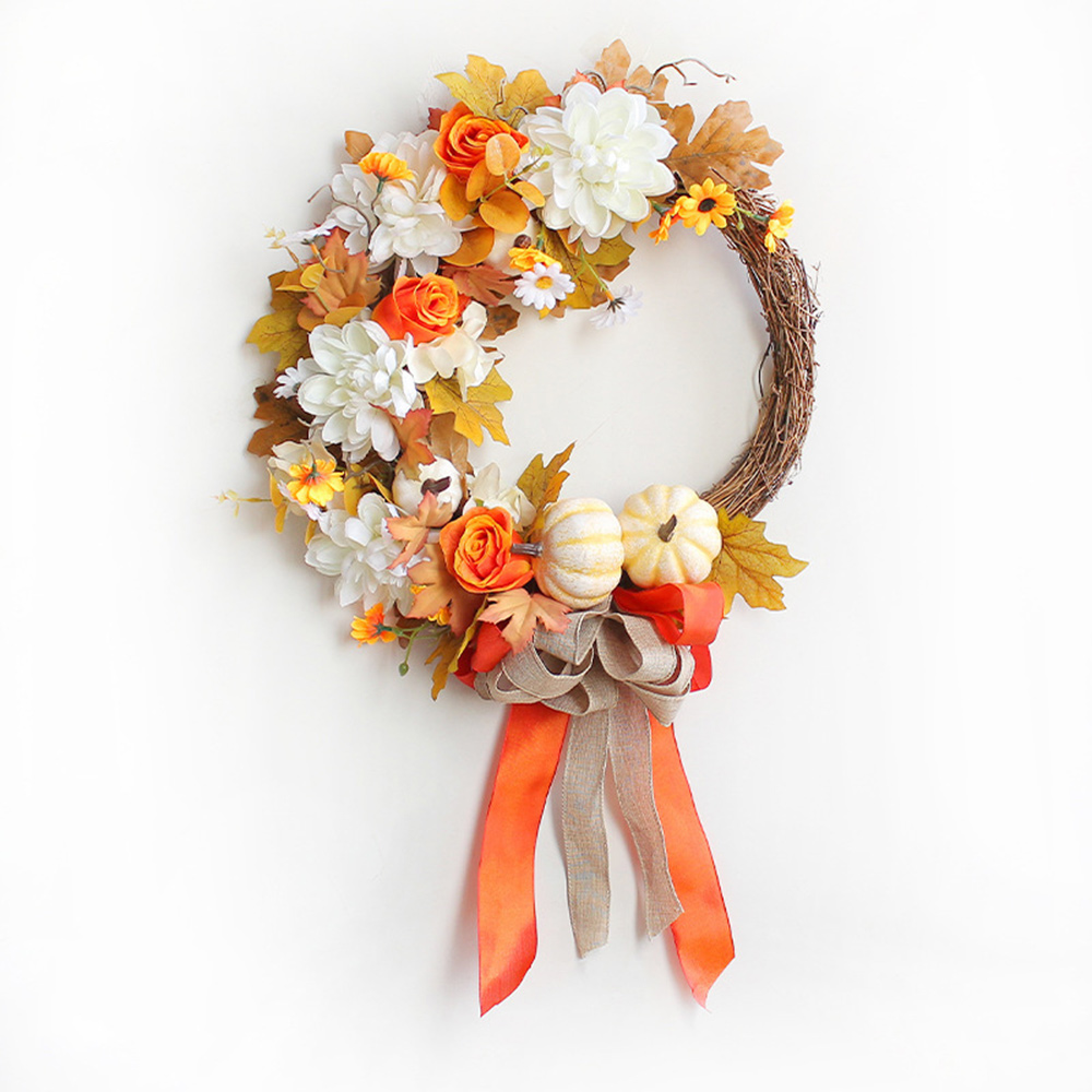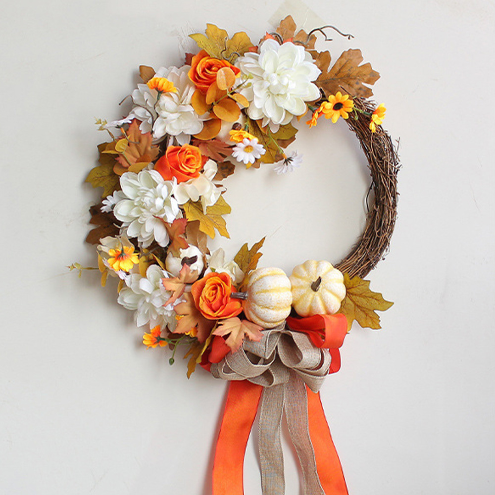 1*Autumn Simulation Pumpkin Wreath Thanksgiving Door Ornament