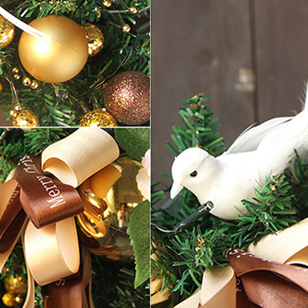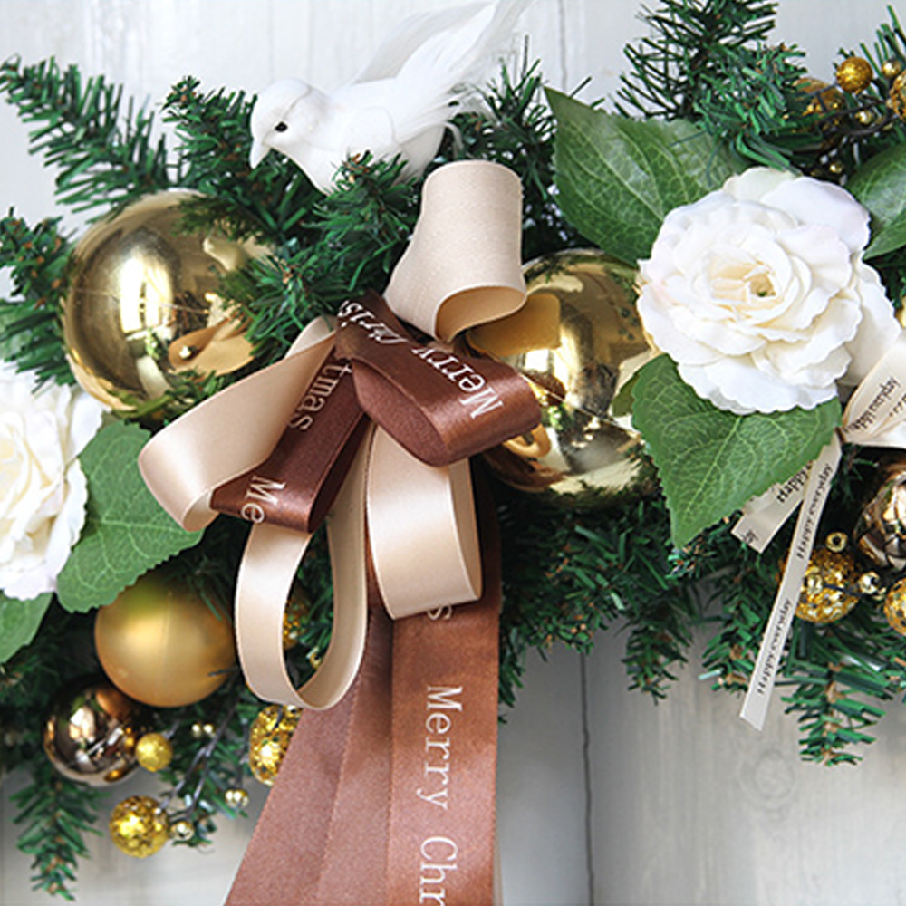 - Appearance: A non-fading everlasting pine branch with flowers and bright green leaves as an accent to present a merry Christmas feeling. An exaggerated hand-made bow is the finishing touch to the wreath.