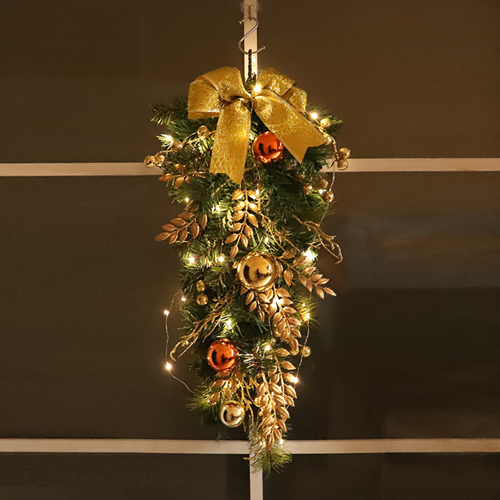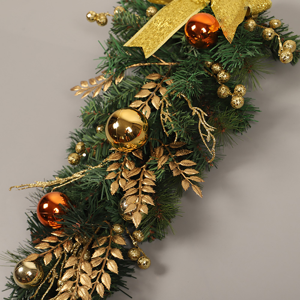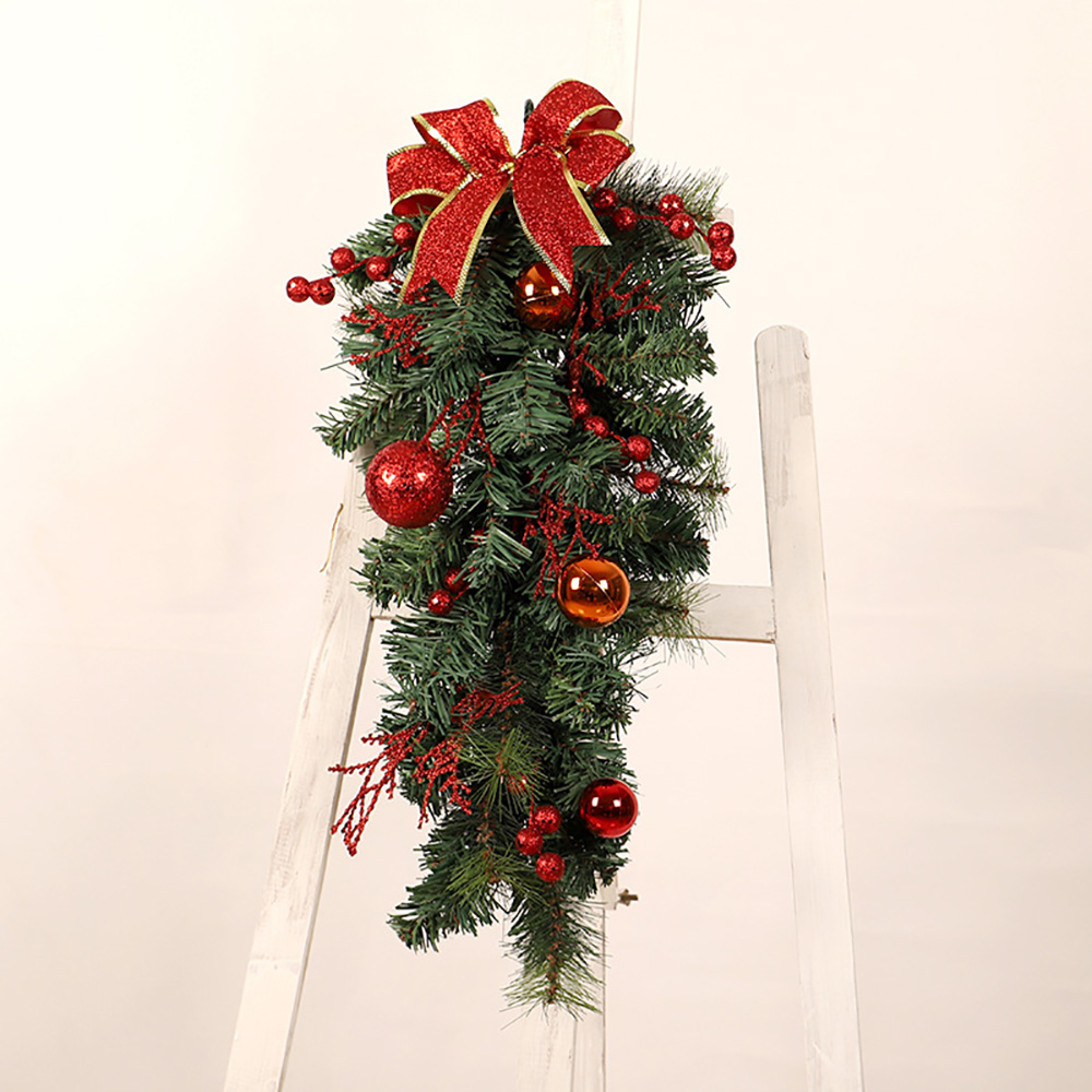 - Upside down style: this garland is in the shape of an upside-down Christmas tree as a whole, with pine needles as a base, inlaid with Christmas balls, bows, ribbons and other accessories.