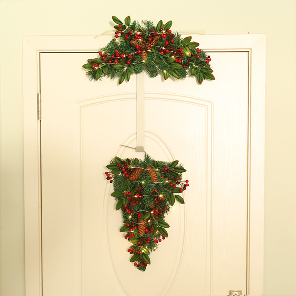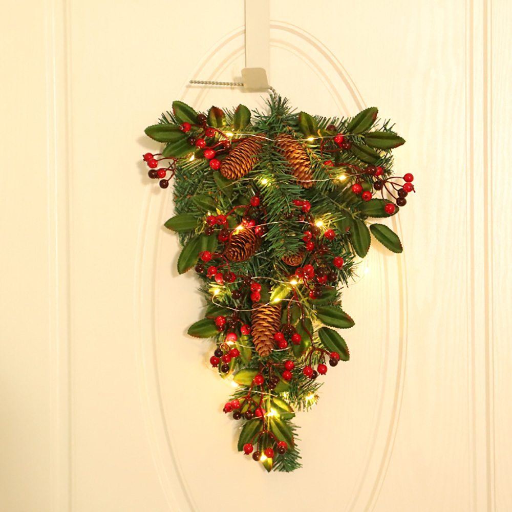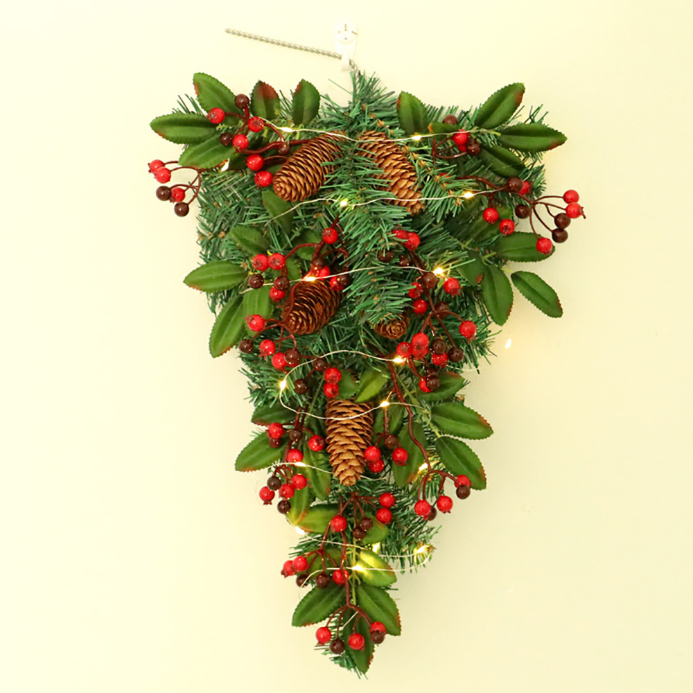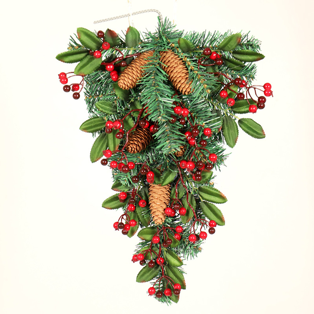 - Upside-down style: this garland is in the shape of an upside-down Christmas tree, with pine needles as the base and inlaid with pine cones, red fruits and other ornaments.