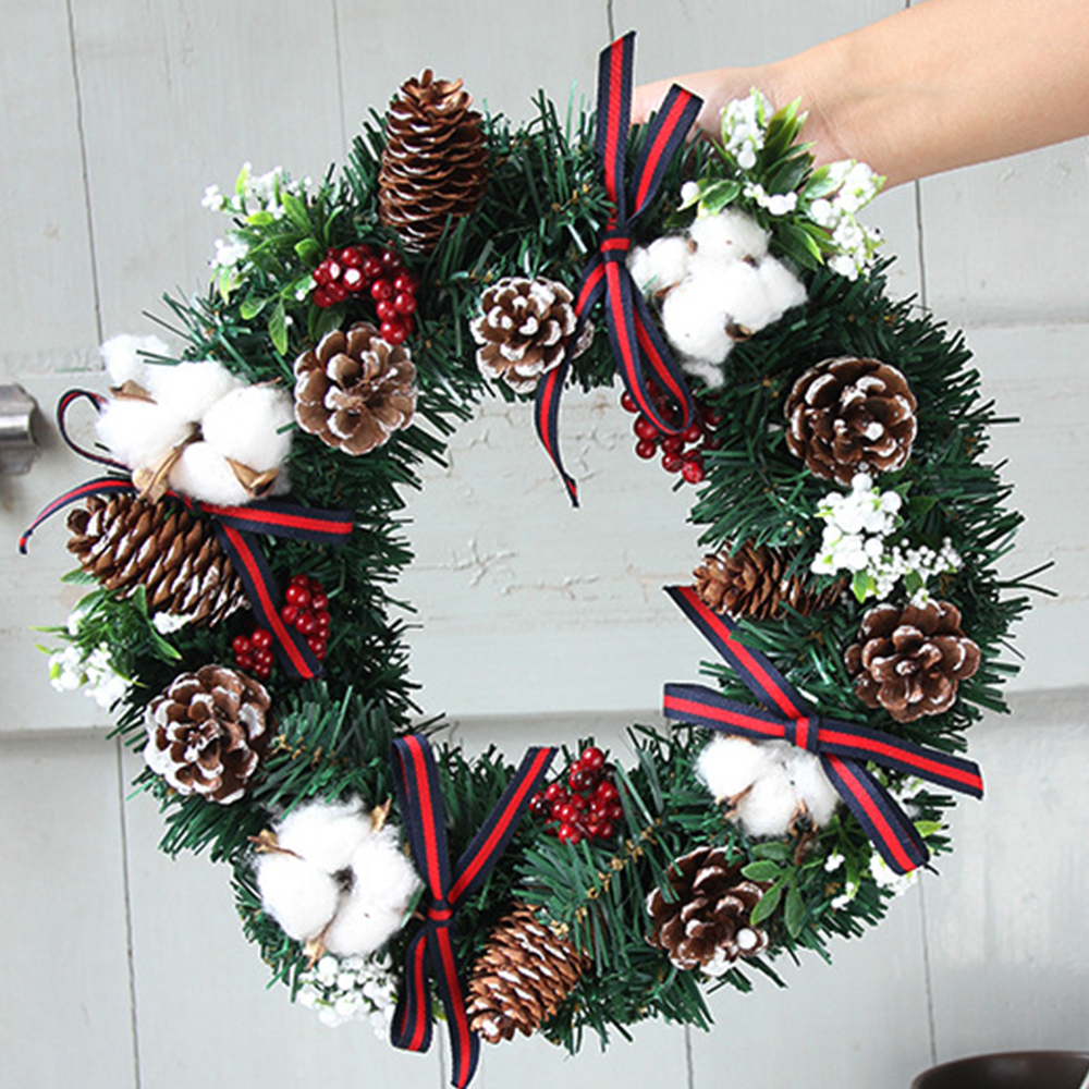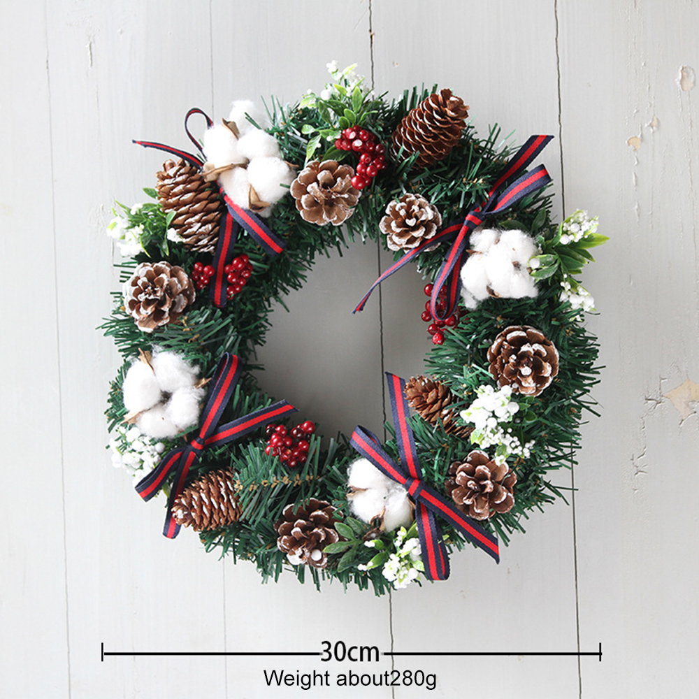 Christmas vine circle simulation cotton pine cone red fruit wreath decorations