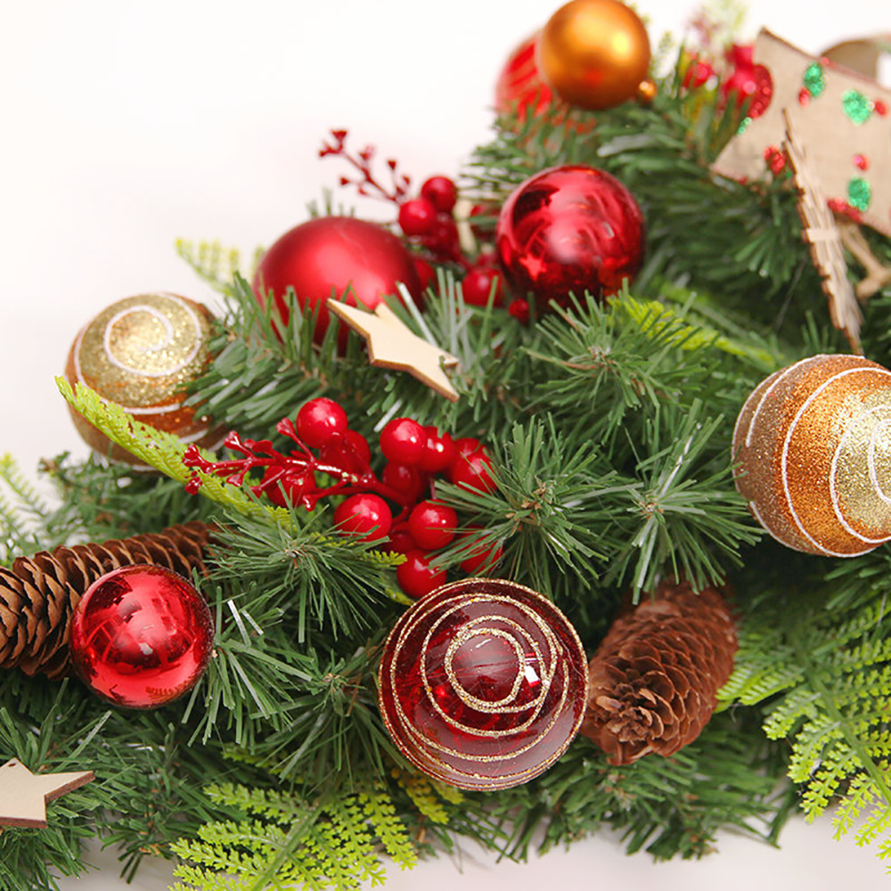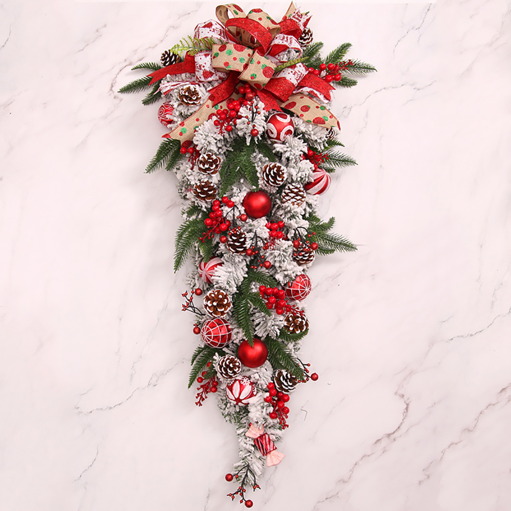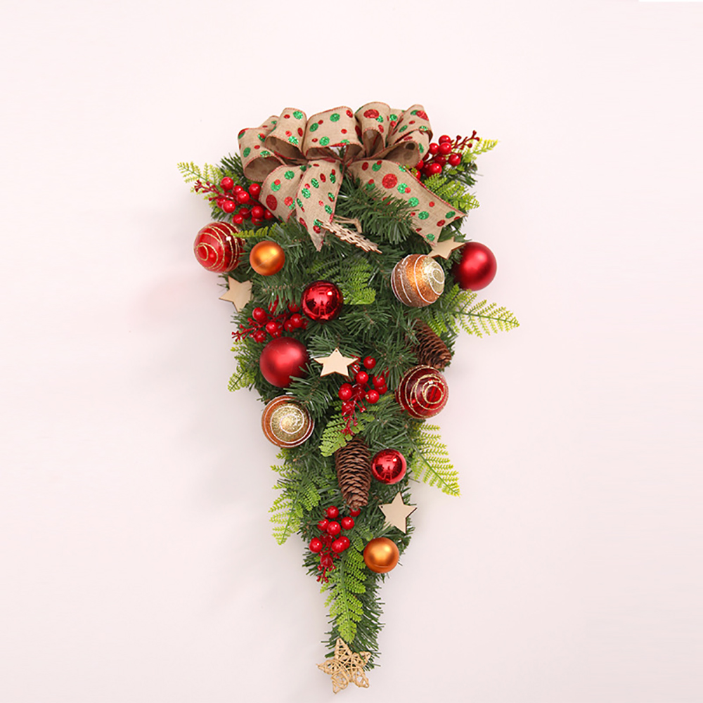 - Style: classic upside-down tree shape, inlaid with pine cones, red balls, bow ties and other small Christmas objects, bright colors, simple but not simple.