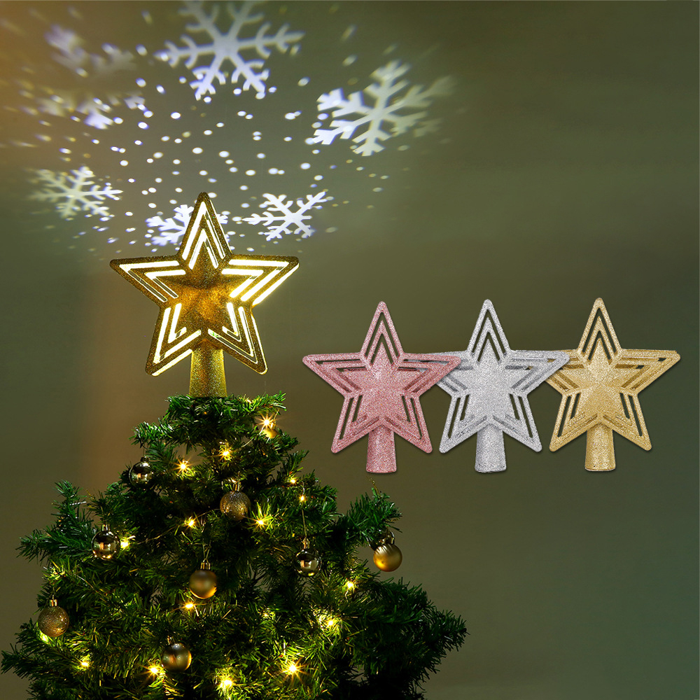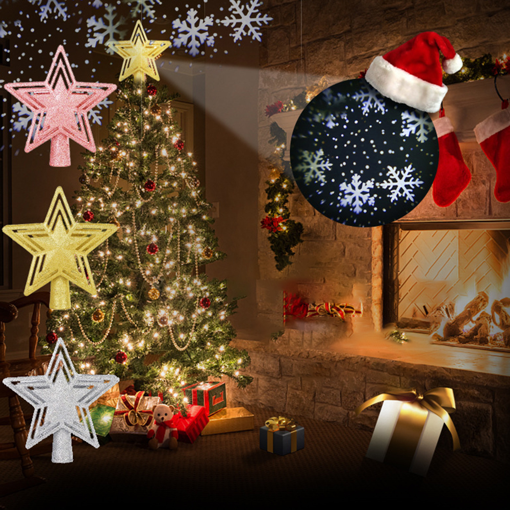 Tree top 3D pentagram rotating blizzard LED projection light