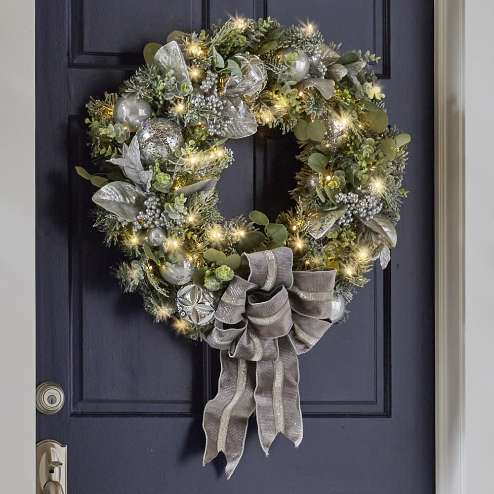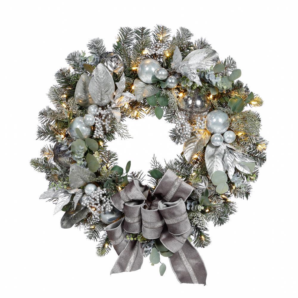 1 *New Christmas LED bow silver wreath curtain wall hanging