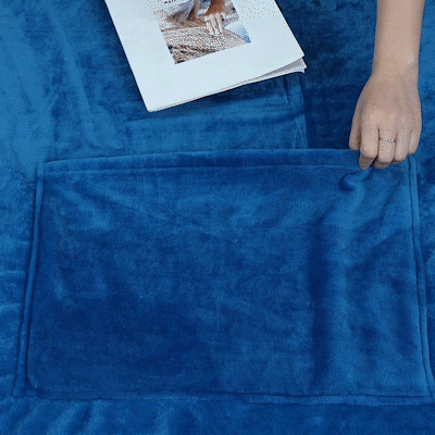 SLIP THE ENTIRE BLANKET INTO THE LARGE FRONT POCKET Yes, you read that right! Folding up this blanket is a breeze because its big pocket serves as its own carrying case.
