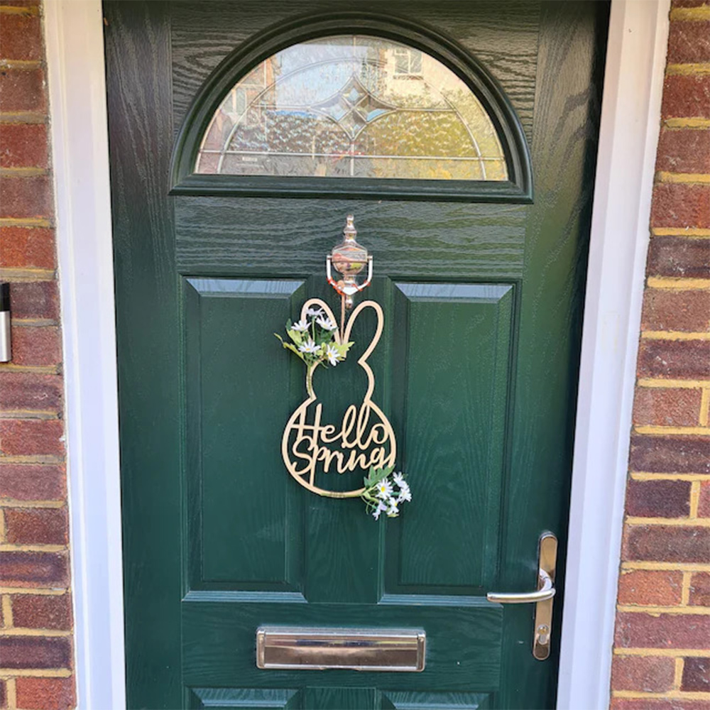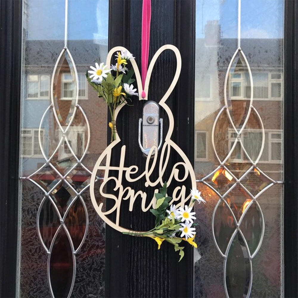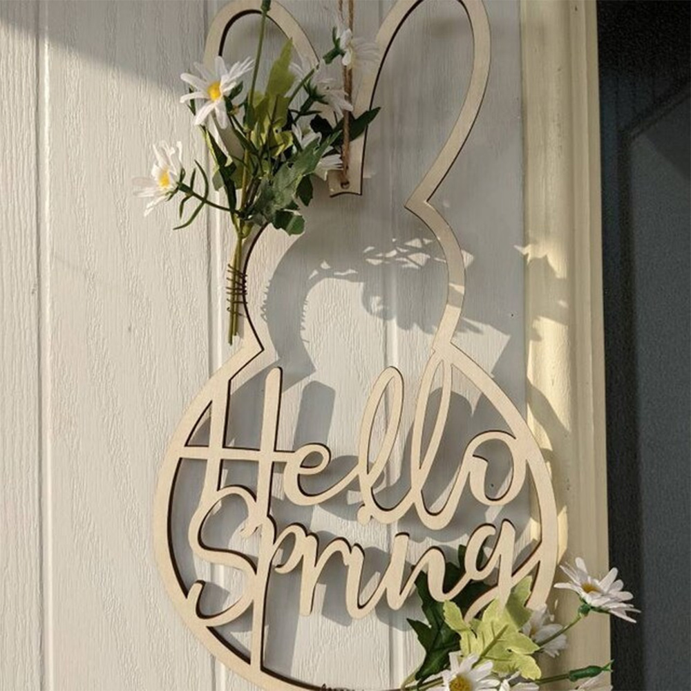 Appearance: Simple hollow rabbit shape, the left ear and the lower right part of the rabbit are decorated with small daisy bouquets, and the English letters of "Hello Spring" are placed in the middle, which increases the overall sense of hierarchy and enriches the visual effect.