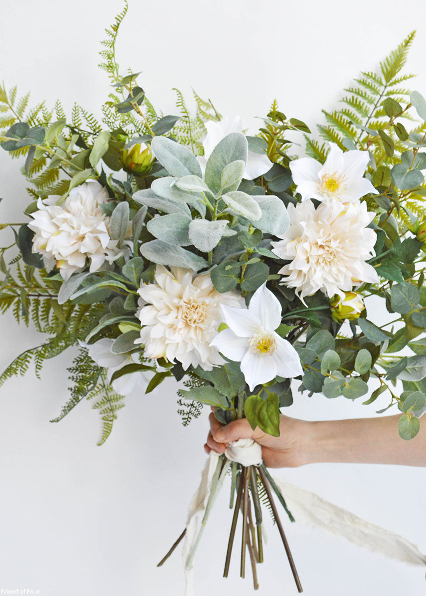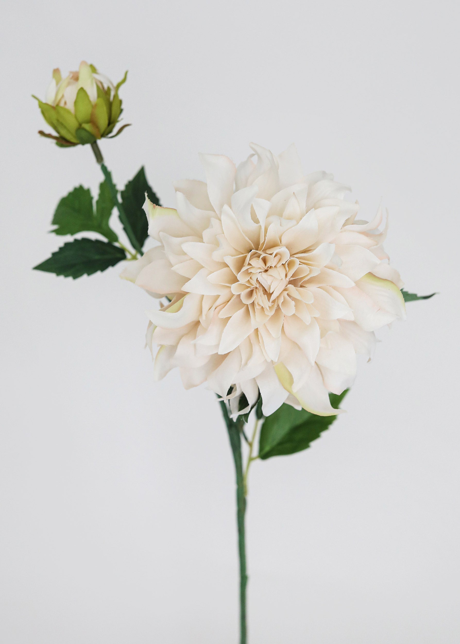 Elevate any faux floral arrangement with this classic, sophisticated ivory dahlia flower. Offering creamy blush undertones, this ivory faux dahlia is the perfect combination of fluffy and elegant, perfect to be used as a focal flower in your wedding decor or faux floral centerpieces.