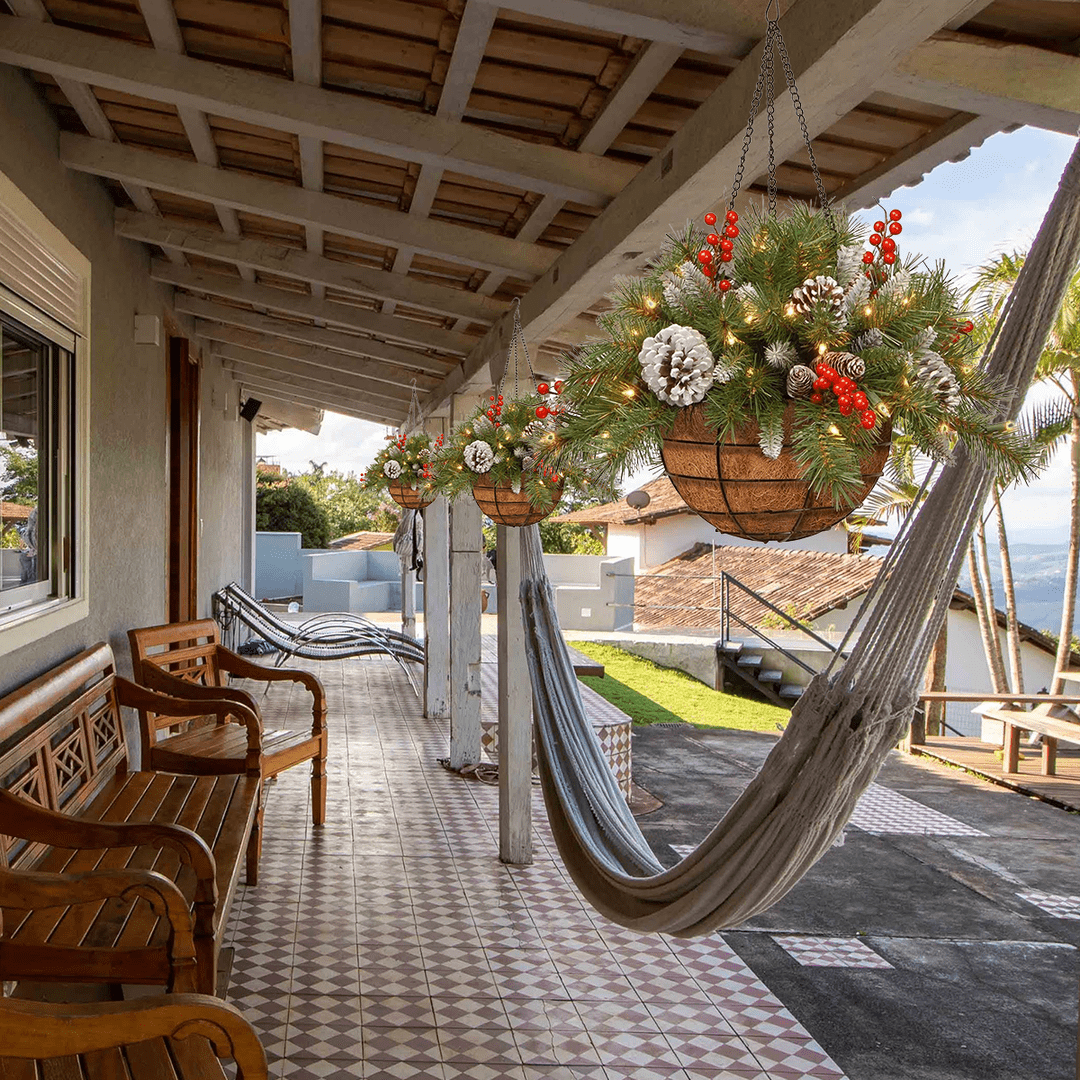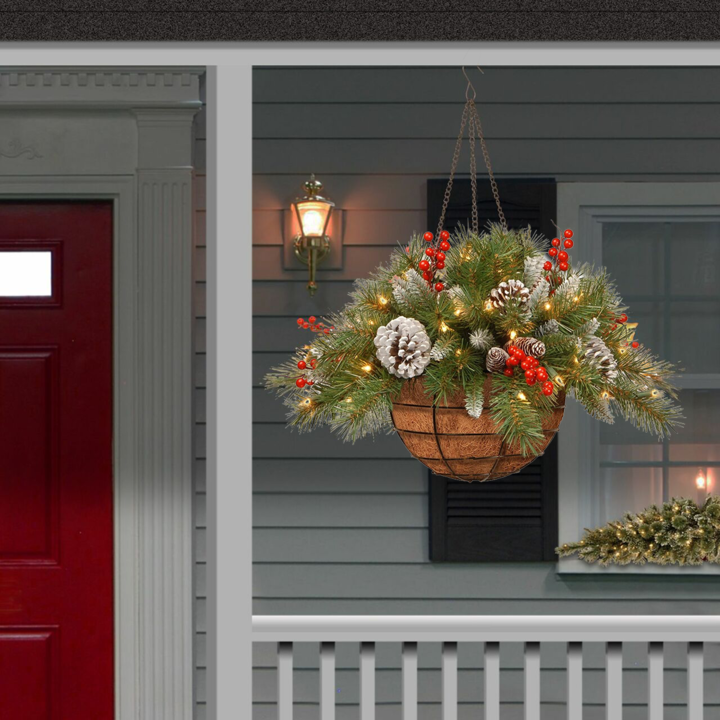 FESTIVE APPEAL: A delightful way to add instant Christmas spirit to any indoor or outdoor space. With 84 individually crafted branch tips, this hanging Christmas plant is as charming as the real thing. EASY MAINTENANCE: No need to water or clean up needles, this hanging pine basket will last many holidays with it's time-tested, fire-resistant, and non-allergenic needles.