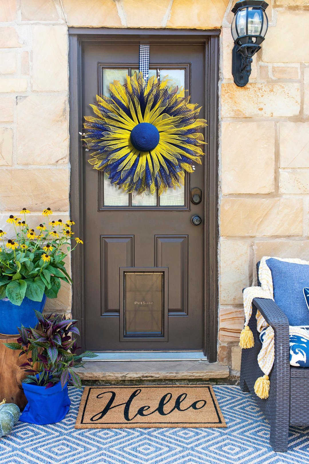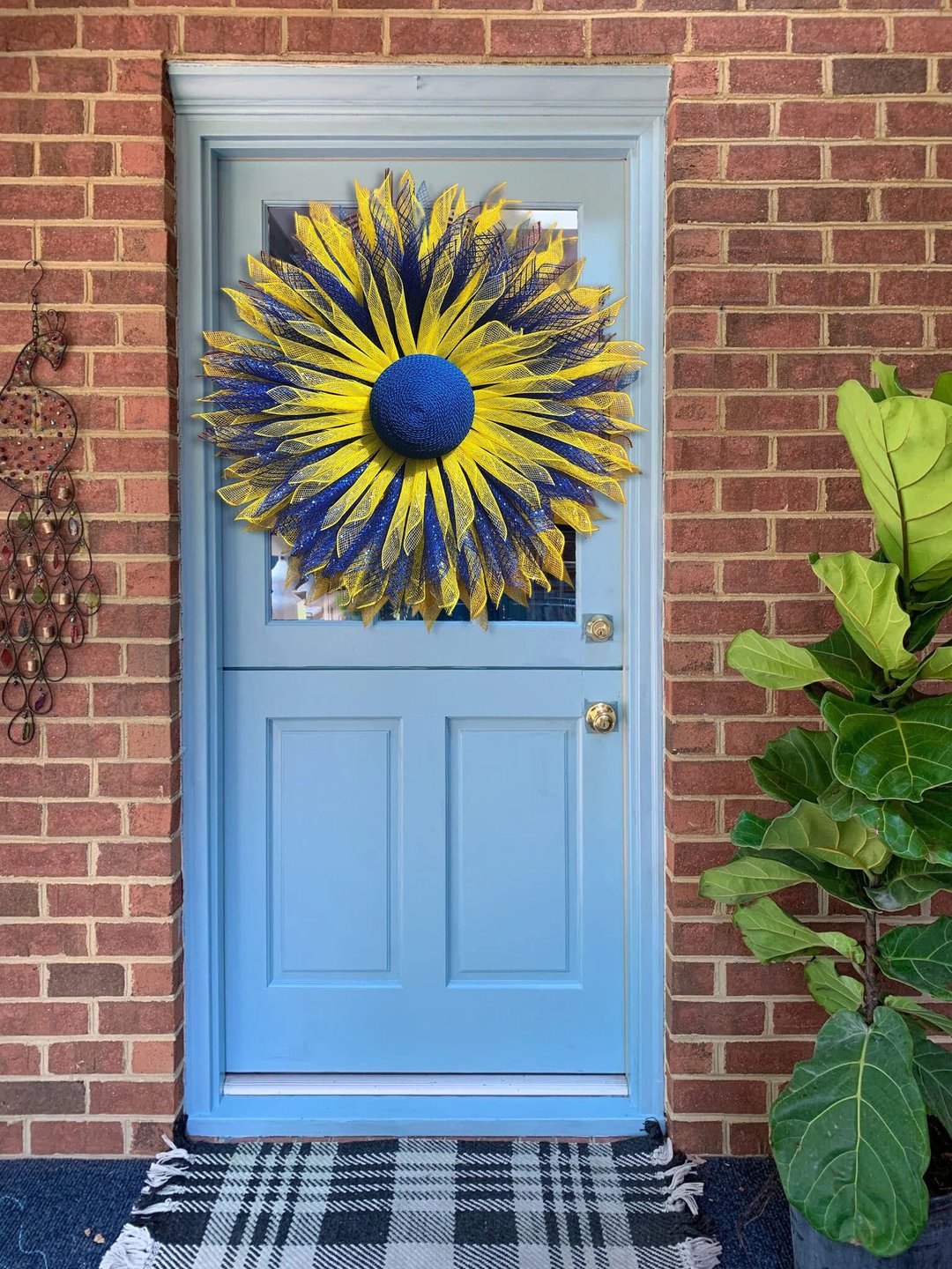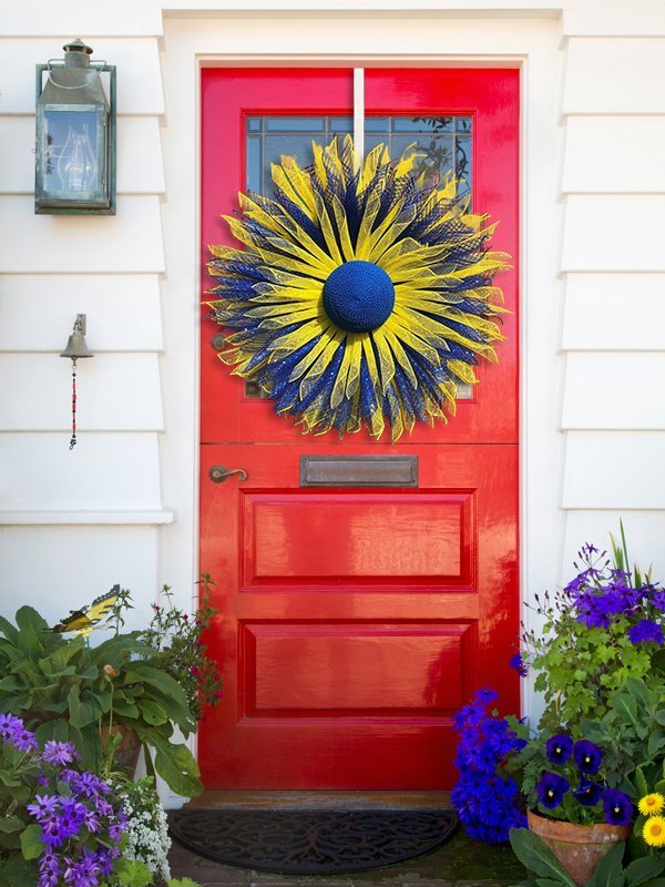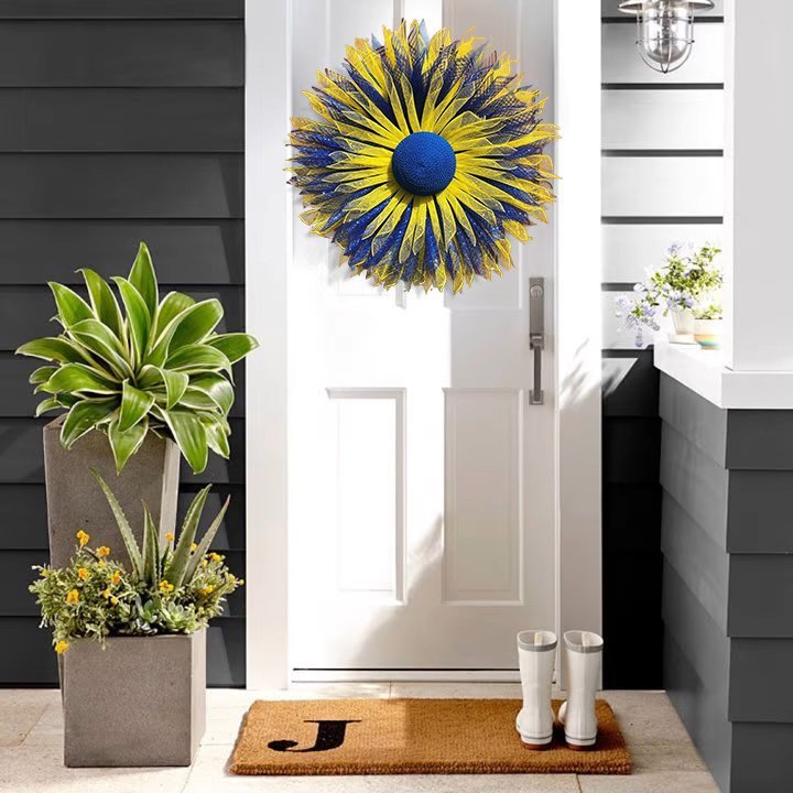 The sunflower is also the the invaded country flower with colors of yellow and blue. Display in honor and support of the people there. Sunflower decor is versatile from early spring to late fall.Show your support for the invaded country by hanging this beautiful wreath for all to see.