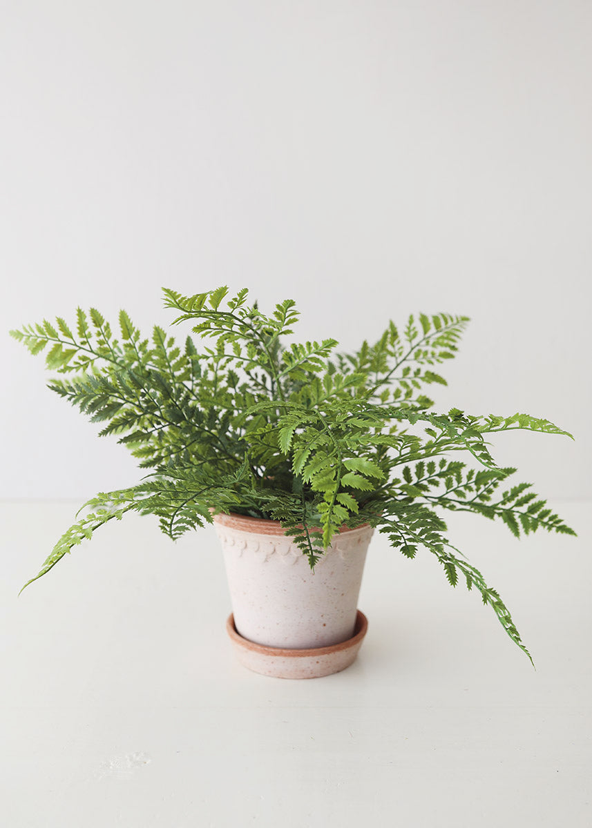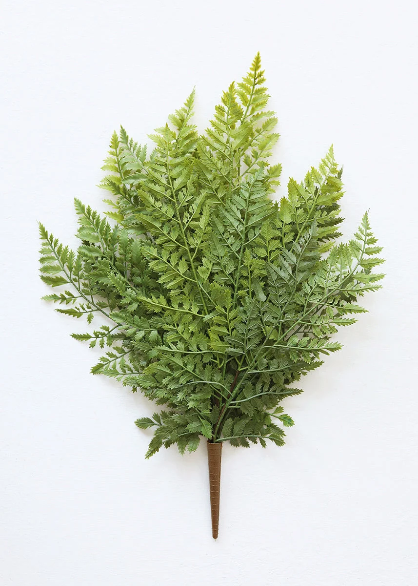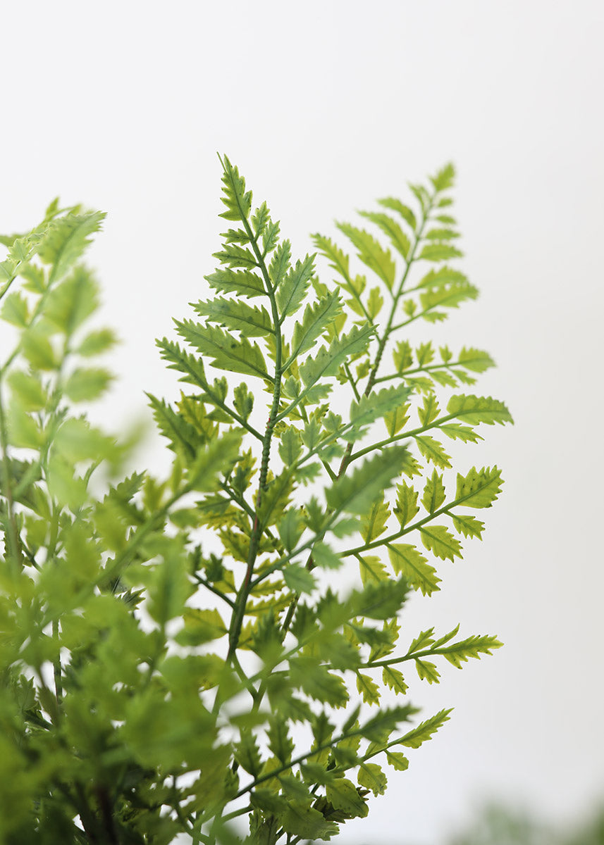 No green thumb, no problem. This no-maintenance artificial lace fern is UV-protected, perfect for brightening your indoor or outdoor spaces all year round. The real-touch leaves offer several tones of greens ranging from serene sage notes to brighter ripe avocado hints. Simply plop the base stem in your planter of choice and fluff out the partially wired inner stems.