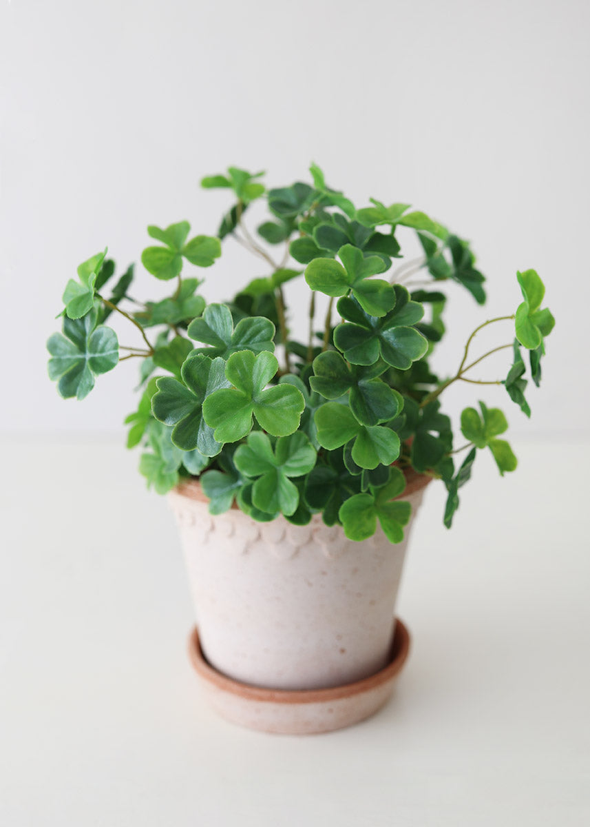 Find fake plants that stay lush green without sun and water, like this stunning four-leaf clover bush. You can style this artificial plant in a pot for an everyday look, or use in Irish wedding centerpieces and St. Patrick's Day decor.
