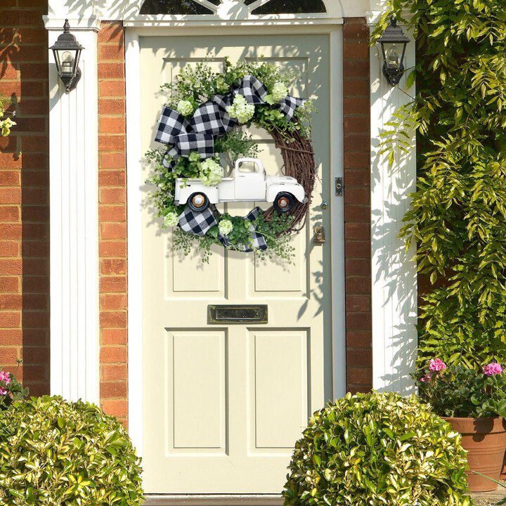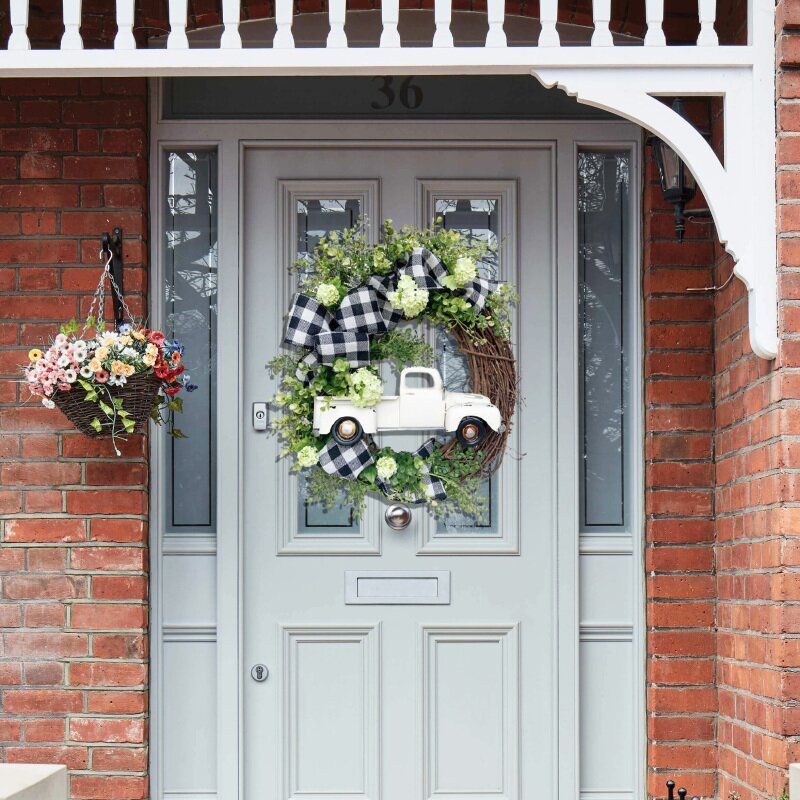 - Our farmhouse truck wreath is handcrafted by experienced workers. We pay attention to every detail of our products.