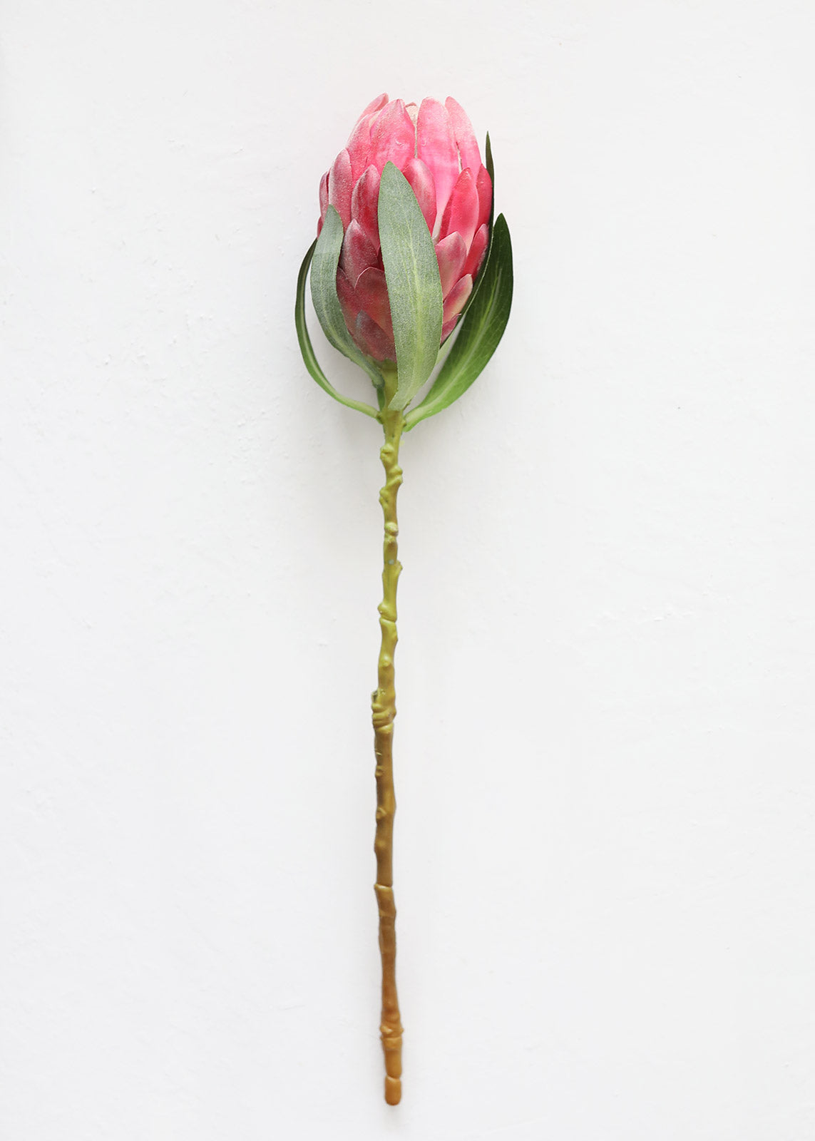 Find high-quality tropical fake flowers, like this stunning fuchsia pink protea bud stem. It's the artificial bloom you need to make any floral vase arrangement or flower bouquet pop.