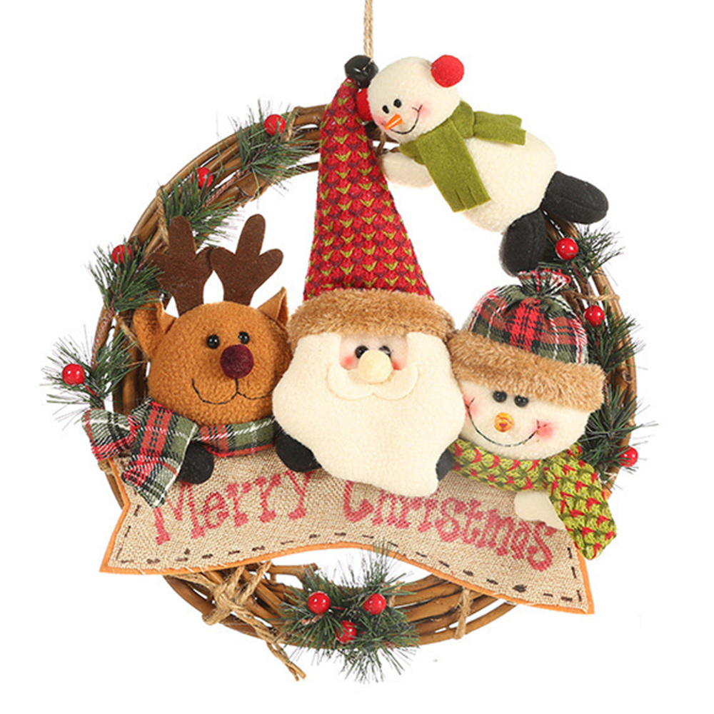 1*Santa Snowman Elk Rattan Wreath Wreath Ornament Christmas Decorations
