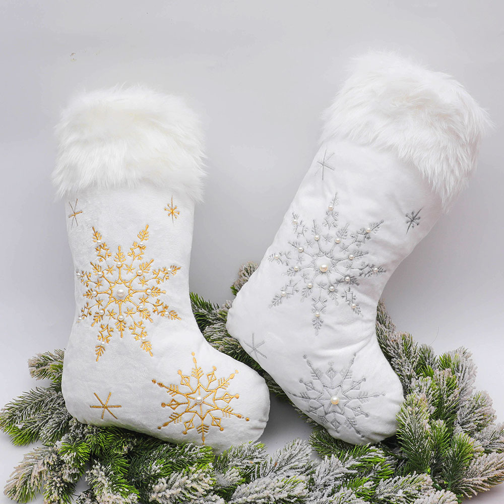 Gold and silver pearl flannel snowflake Christmas sock Christmas ornaments