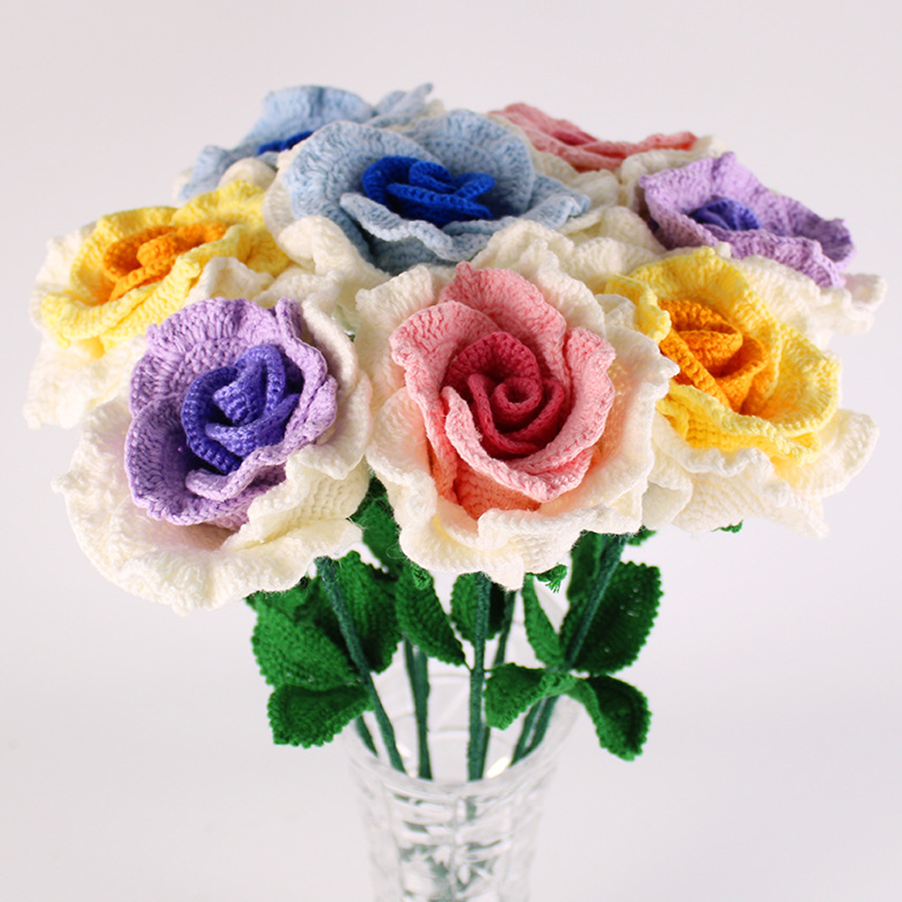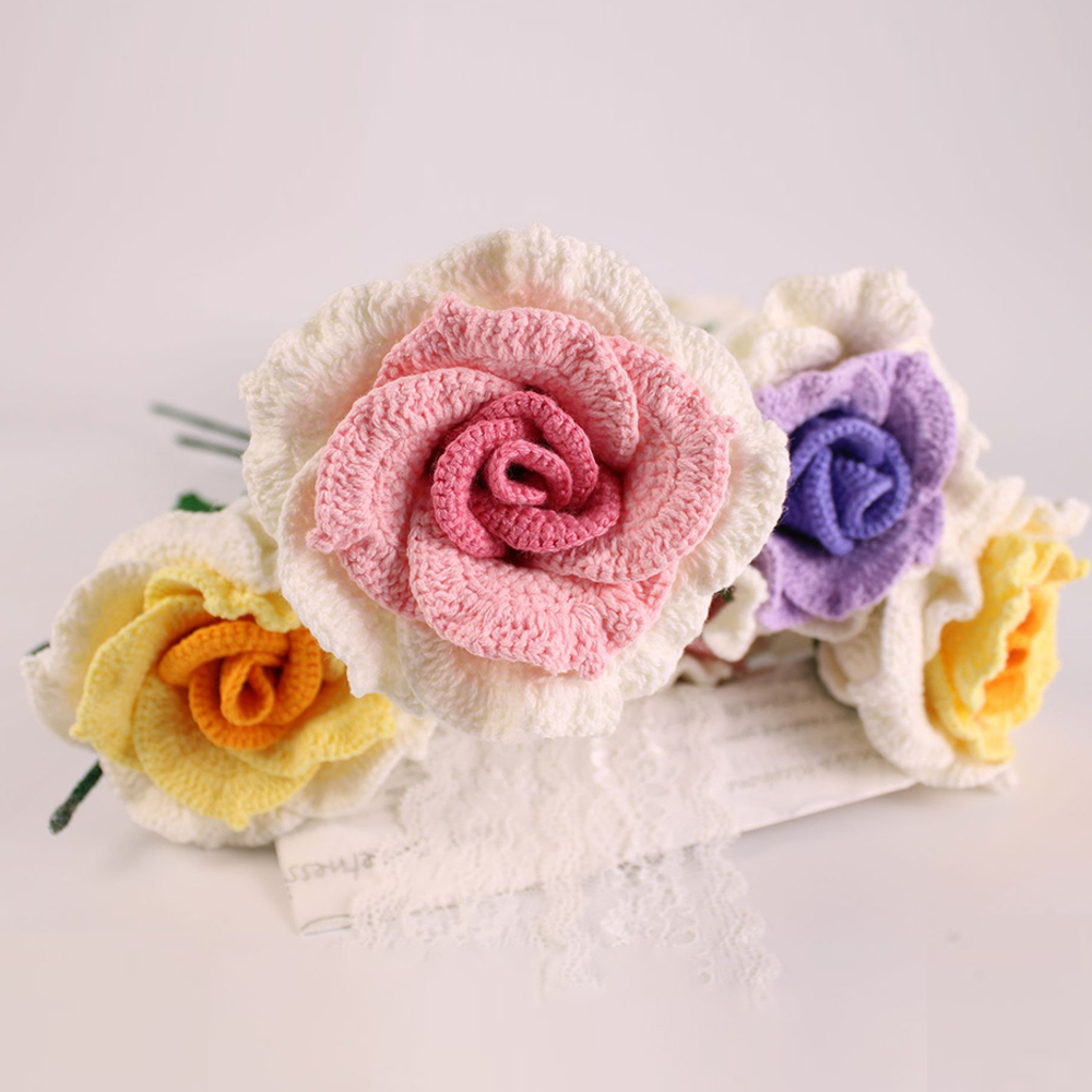 1*Handmade crochet wool weaving gradient rose home decoration simulation flower