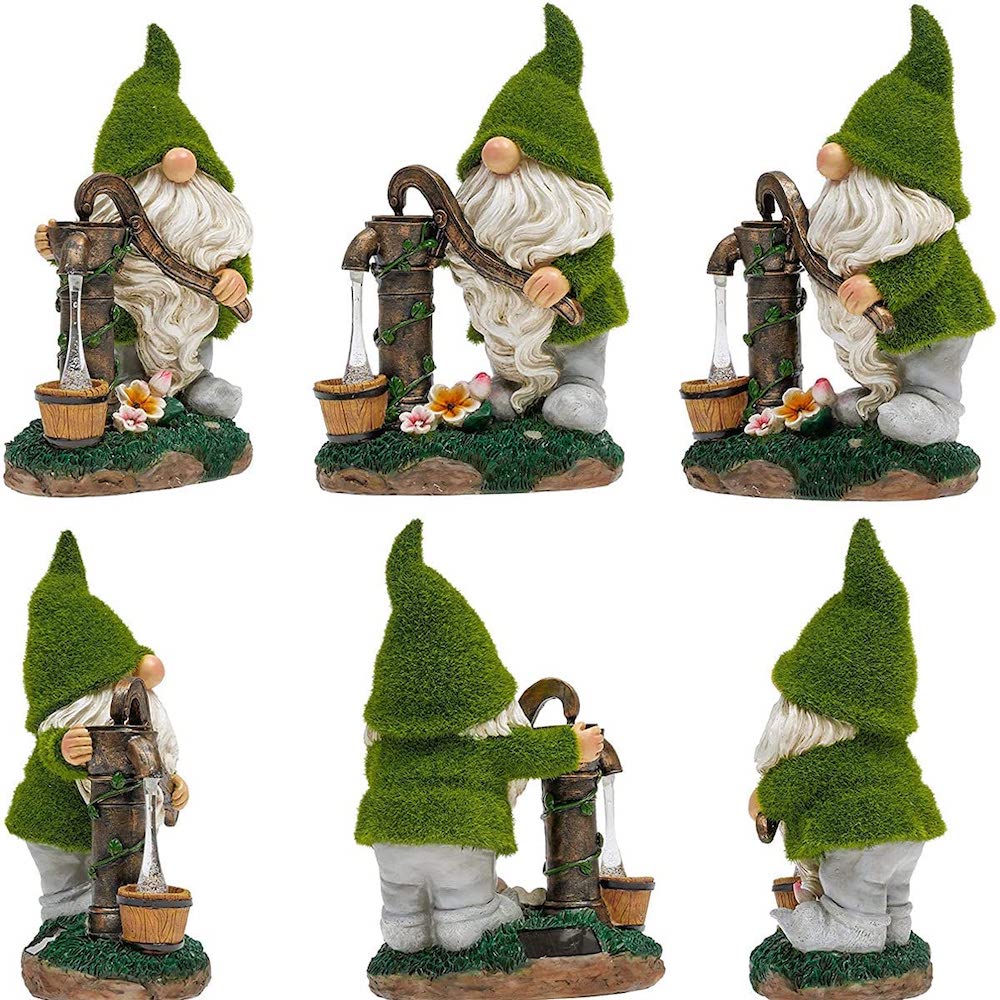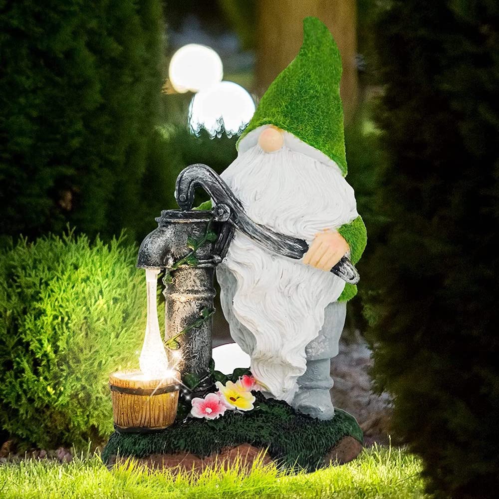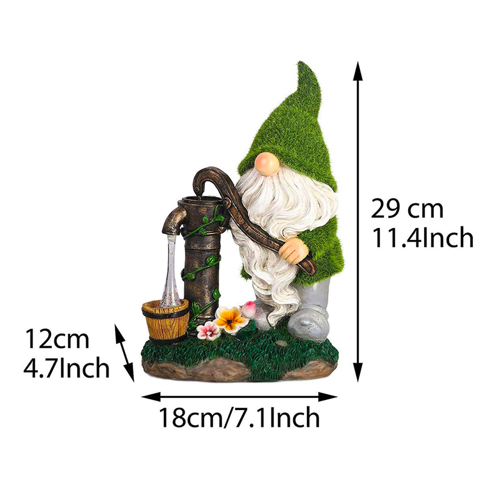 BRING ENCHANTING ADDITION TO YOUR GARDEN: The gnome is getting water from a pressurized well, and we can see the flowing water with lighting effects. This garden gnome statue brings fun and whimsical charm to your garden.This funny garden gnomes brings a wonderful addition to your garden.