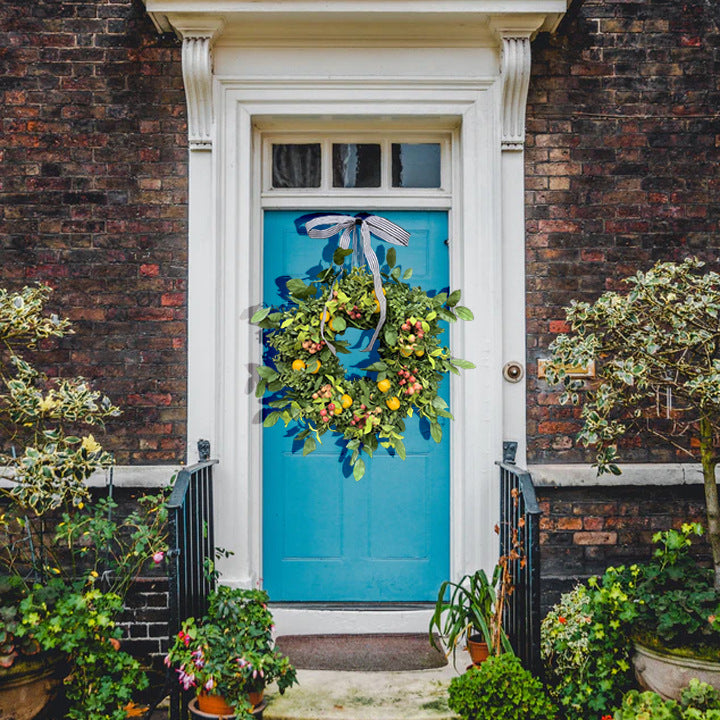 Our lemon garland is handmade, composed of high-quality artificial green leaves, lemons and pomegranates, beautifully arranged on natural wood branches. All the leaves are made of silk, and the lemon is made of foam plastic. The appearance is very realistic. It will become a beautiful landscape indoor or outdoor and shine on your front door.