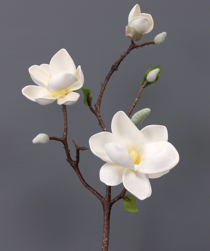 Complete your Spring home decor with this artificial magnolia branch in cream white. Add to any floral arrangement or simple drop in a vase on your coffee table to bring Spring in!