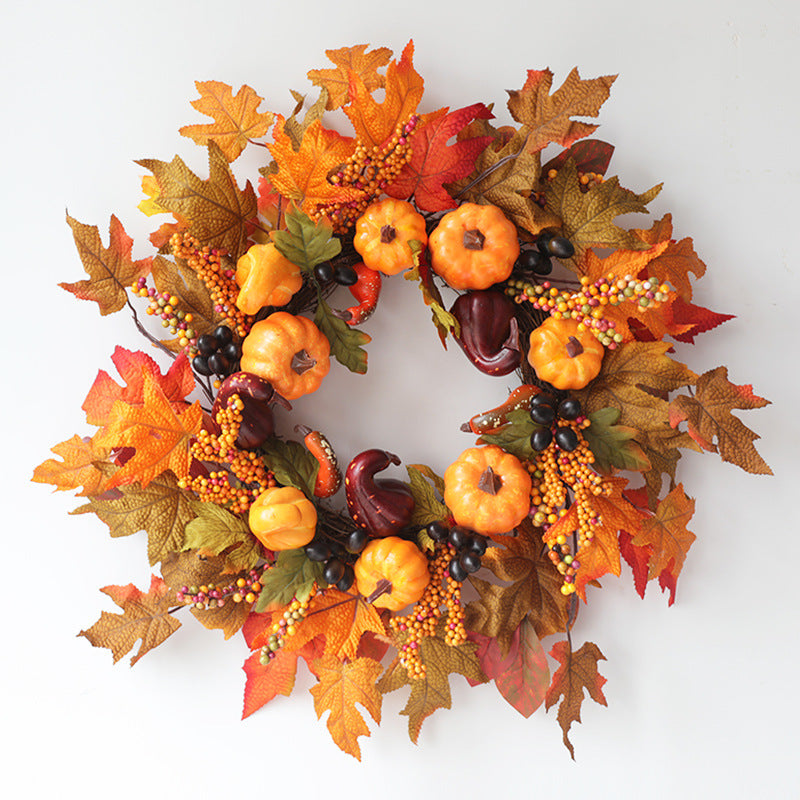 Material: Rattan, artificial pumpkin, maple leaves, berries, and pine cones.