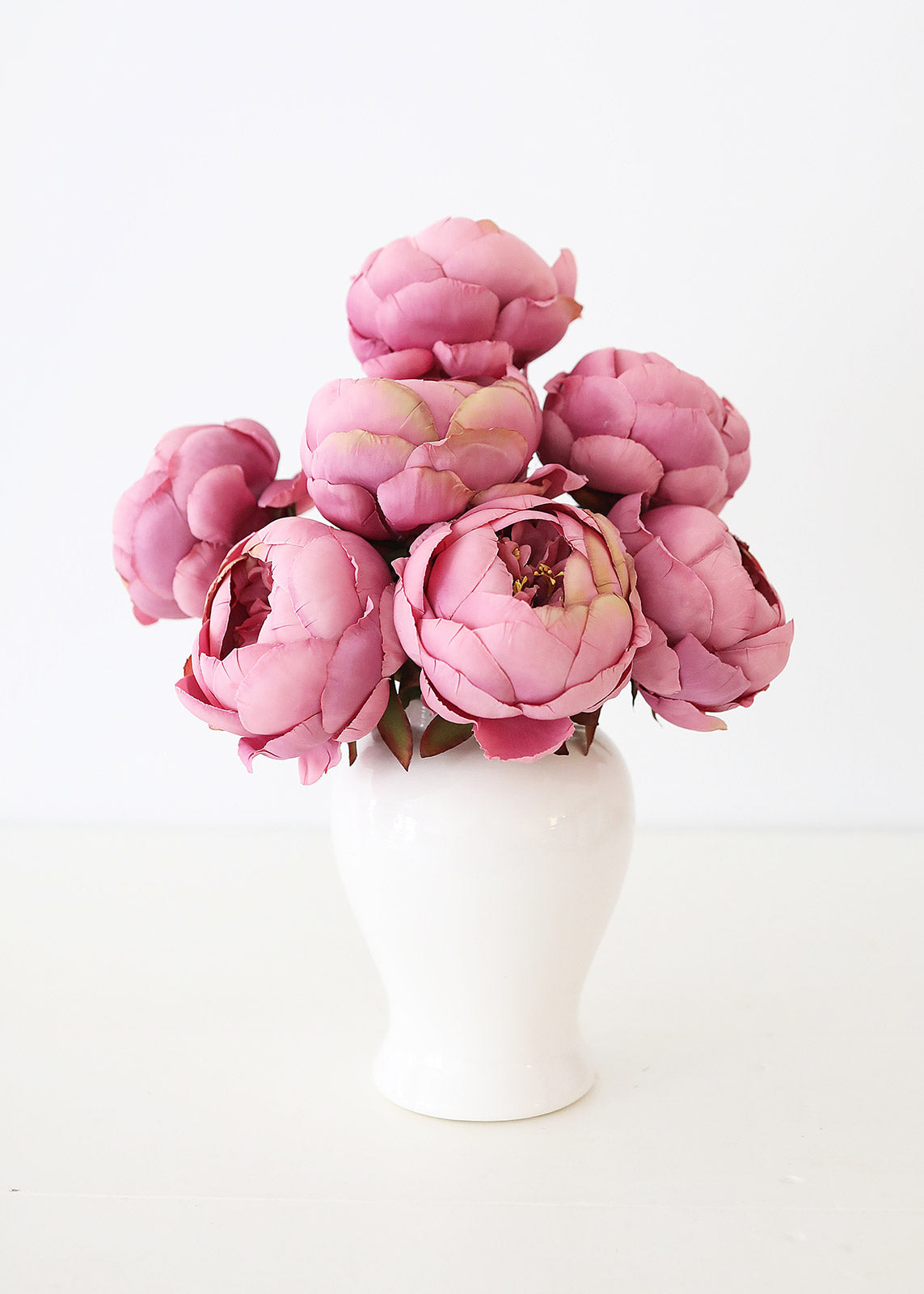 Find faux flowers for home decor, like this lovely mauve peony stem. The warm hue of these artificial peonies is certain to enhance the look of your flower wreaths and floral centerpieces for any season.
