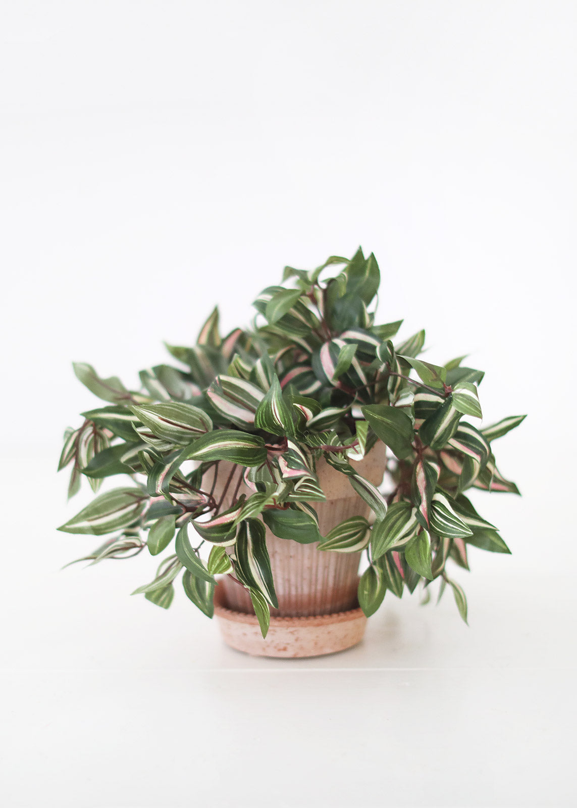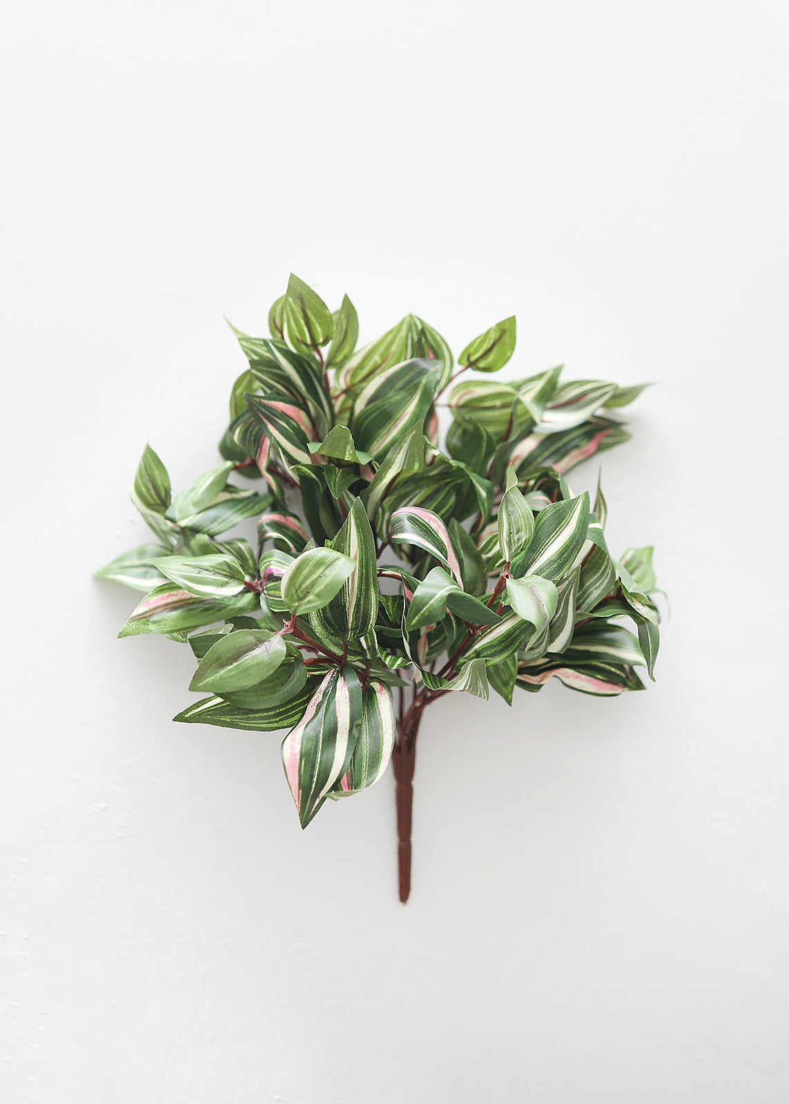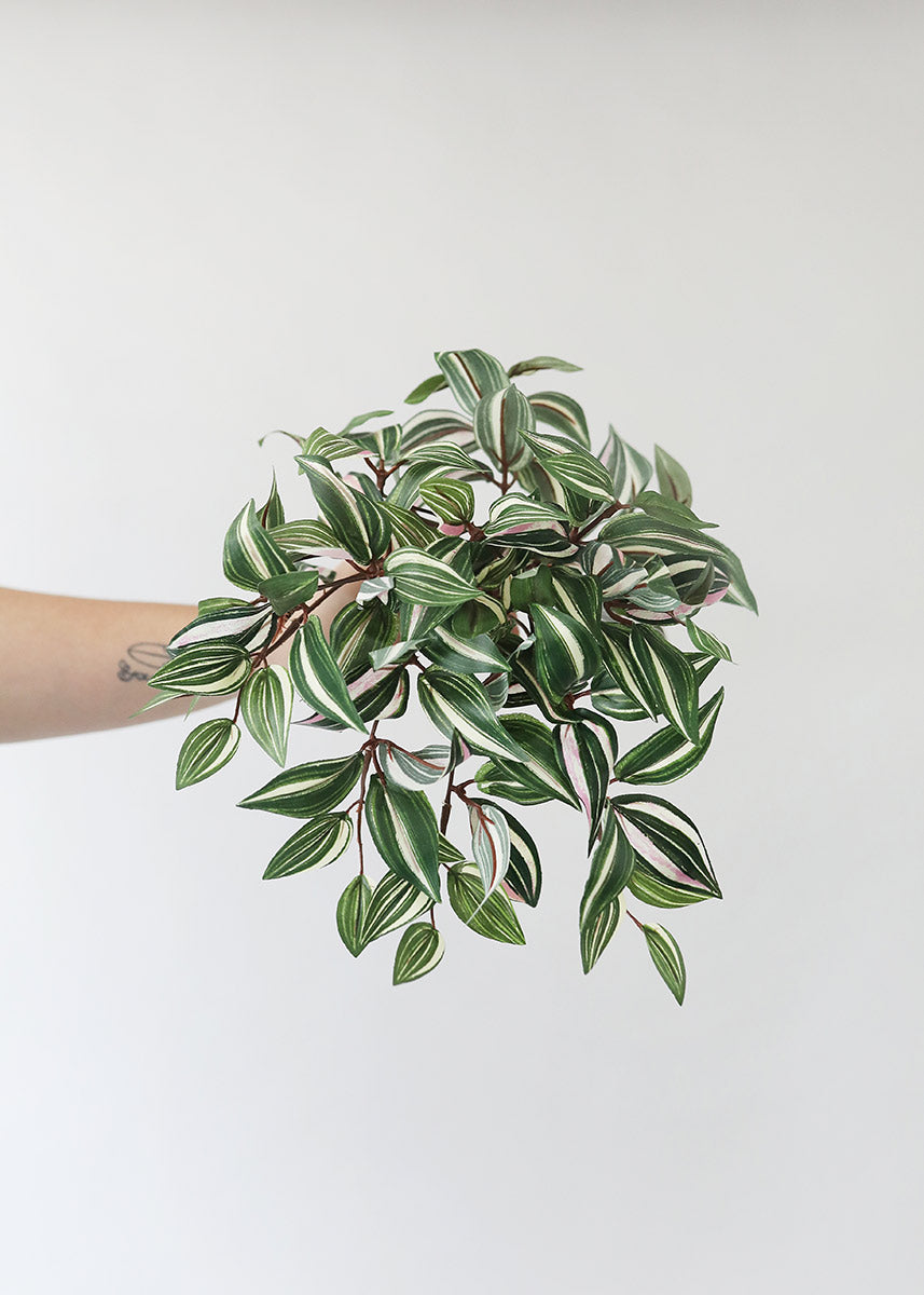 Get artificial hanging greenery for your DIY centerpieces, like this beautiful variegated green and creamTradescantia zebrina hanging bush. Perfect to add to your hanging baskets at home for gorgeous colored foliage!