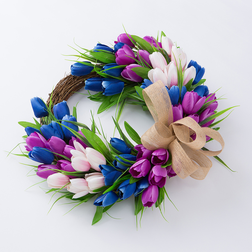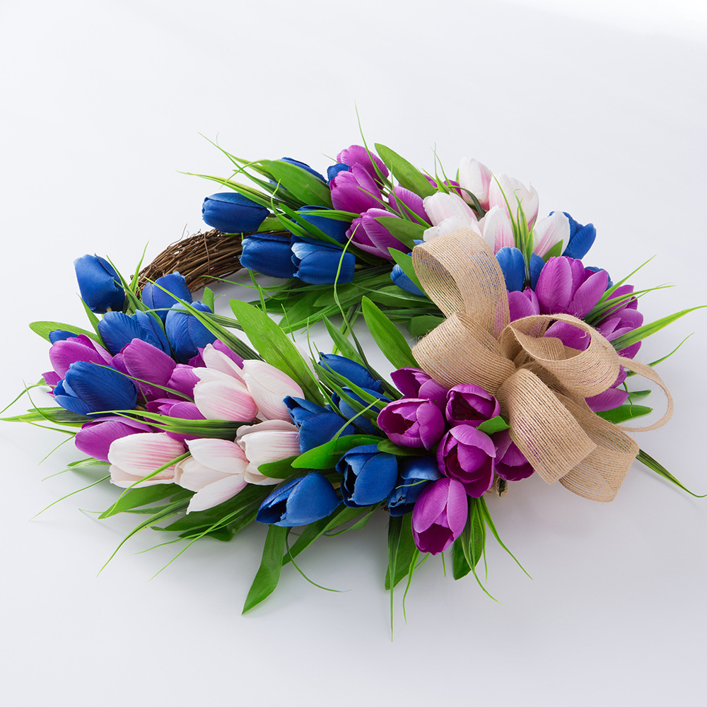 Natural Rattan Festive Simulation Blue Purple Tulip Wreath Decoration