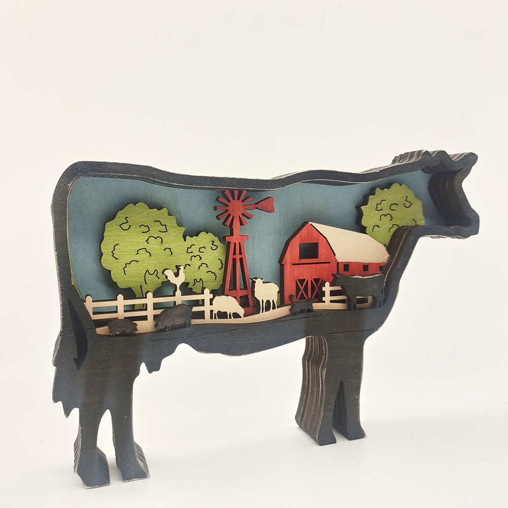 Design:the exterior is polished into a vivid and flexible calf shape, and the carvings inside are more detailed, layered on top of each other, with images of sheep, roosters, windmills, houses, fences and green trees.There are LEDs installed inside, and the warm yellow light illuminates the night, bringing you a warm time.