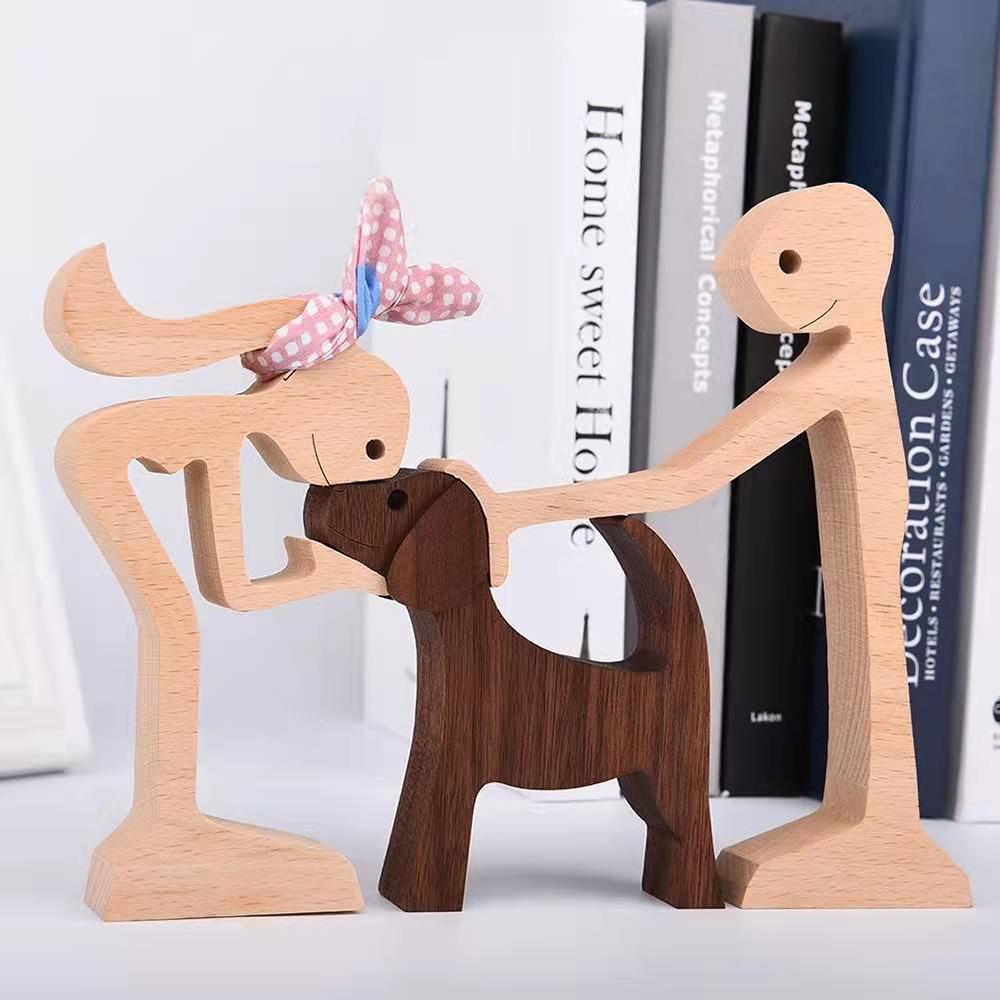 1 * New double and pet dog home desktop wooden carving commemorative ornaments