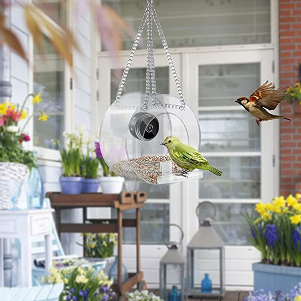 - Smart camera: It can be equipped with a camera device, which can be connected to a mobile computer through WIFI to monitor and record the real-time status of the bird feeder anytime, anywhere. While watching birds, it can also take into account the status of the bird feeder and add food in time. The compact camera is set inside, so you can rest assured that it will not be damaged by birds.