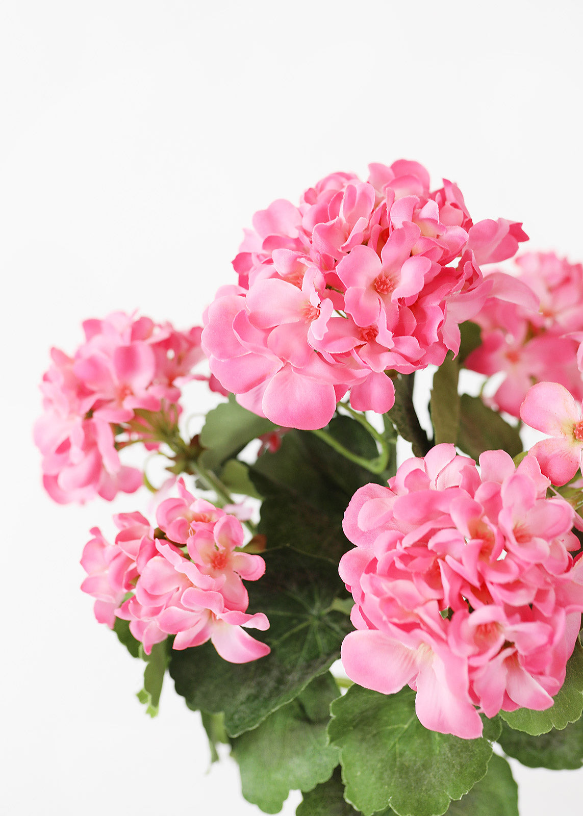 Find artificial outdoor flowers, like this beautiful pink silk geranium bush that is UV protected. Perfect for your patio hanging baskets and window boxes.