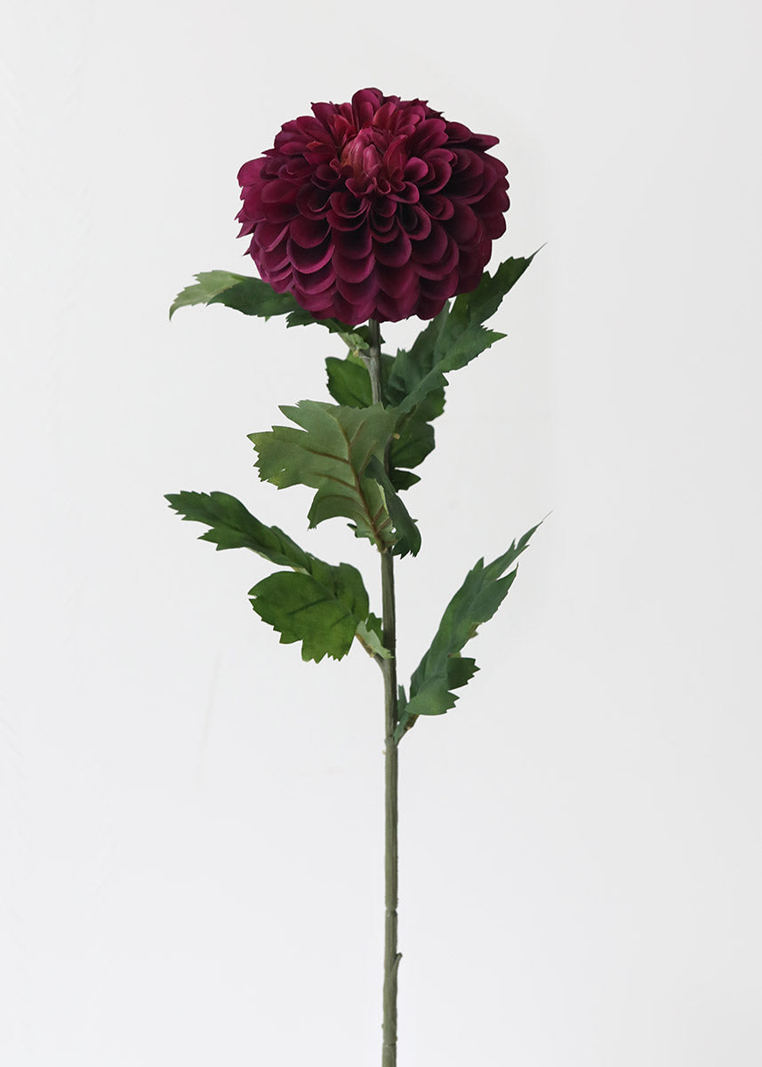 Find fake flowers in striking colors like this stunning plum purple silk dahlia. The wired stem makes it super easy for you to style the artificial blooms in any design from vase arrangements to wedding flower bouquets.