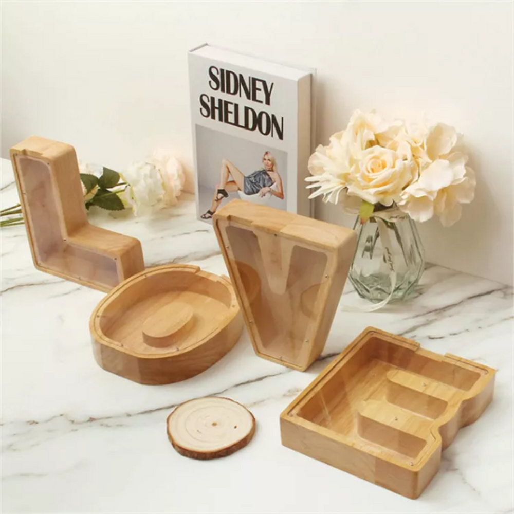 Material: The wooden alphabet savings jar is made of high quality natural wood that is safe for all ages, does not contain any harmful substances and is durable.