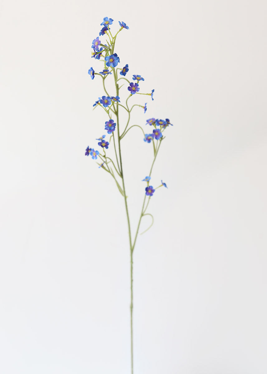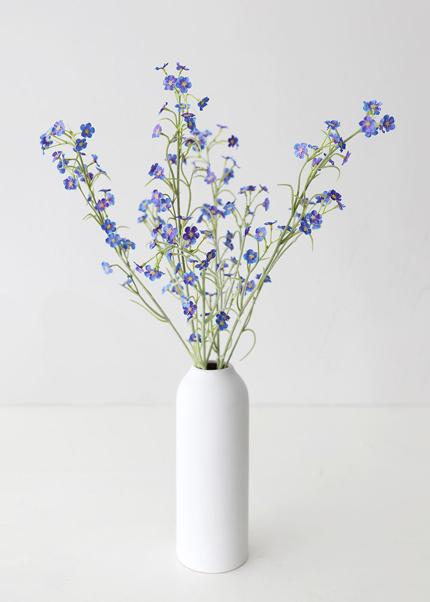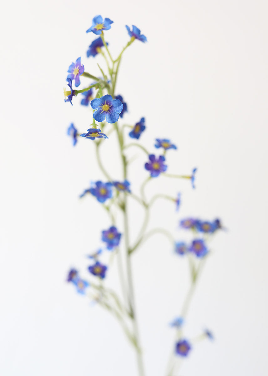 Transform any space into a field of wildflowers with these delicate multi-toned faux forget me not branches. Each tiny bloom inspired by nature is unique in coloring and will add the perfect pop of dimensional color to your floral arrangements. Easily bend or trim these filler stems to size to complete any artificial flower arrangement or bouquet.