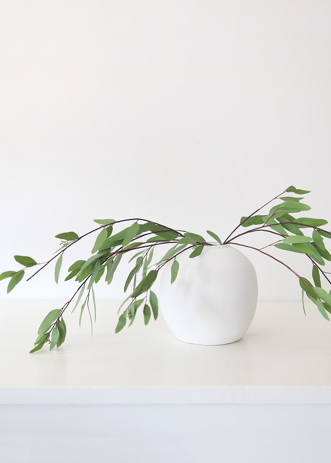 Find artificial greenery stems to enhance your arrangements, like this green fake weeping seeded eucalyptus branch with real touch leaves. Whether you style this foliage with flowers or alone in a vase, the look is sure to be stunning.