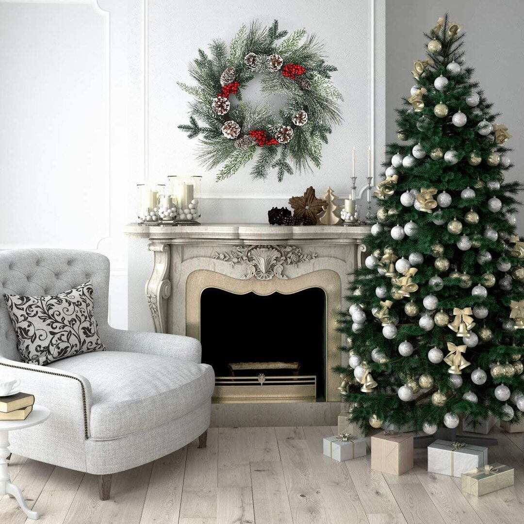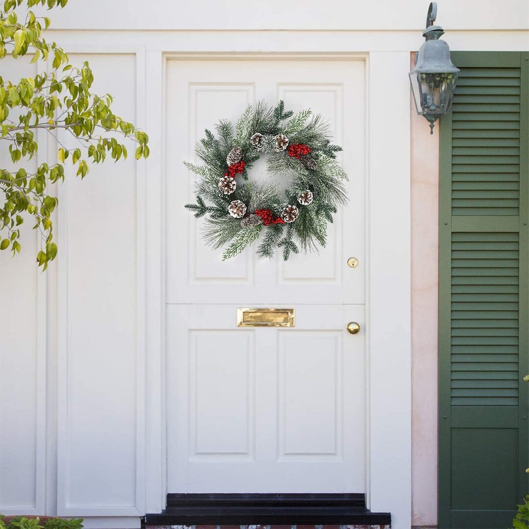 Beautiful winter wreath offers a realistic appearance, Filling with beautiful and lush plant; The elegant look of this flower wreath helps to add a touch of color and the feel of nature to your home. The winter wreath can be used indoor or outdoor making it a versatile decorating accessory. As a Front door wreath, place it on your front door or Hang it above your fireplace; also suitable to use for window, wall, office, retail stores decoration, parties, indoor activities and all kinds of festive or as a gift. Perfect match with our winter wreath and christmas new year picks.