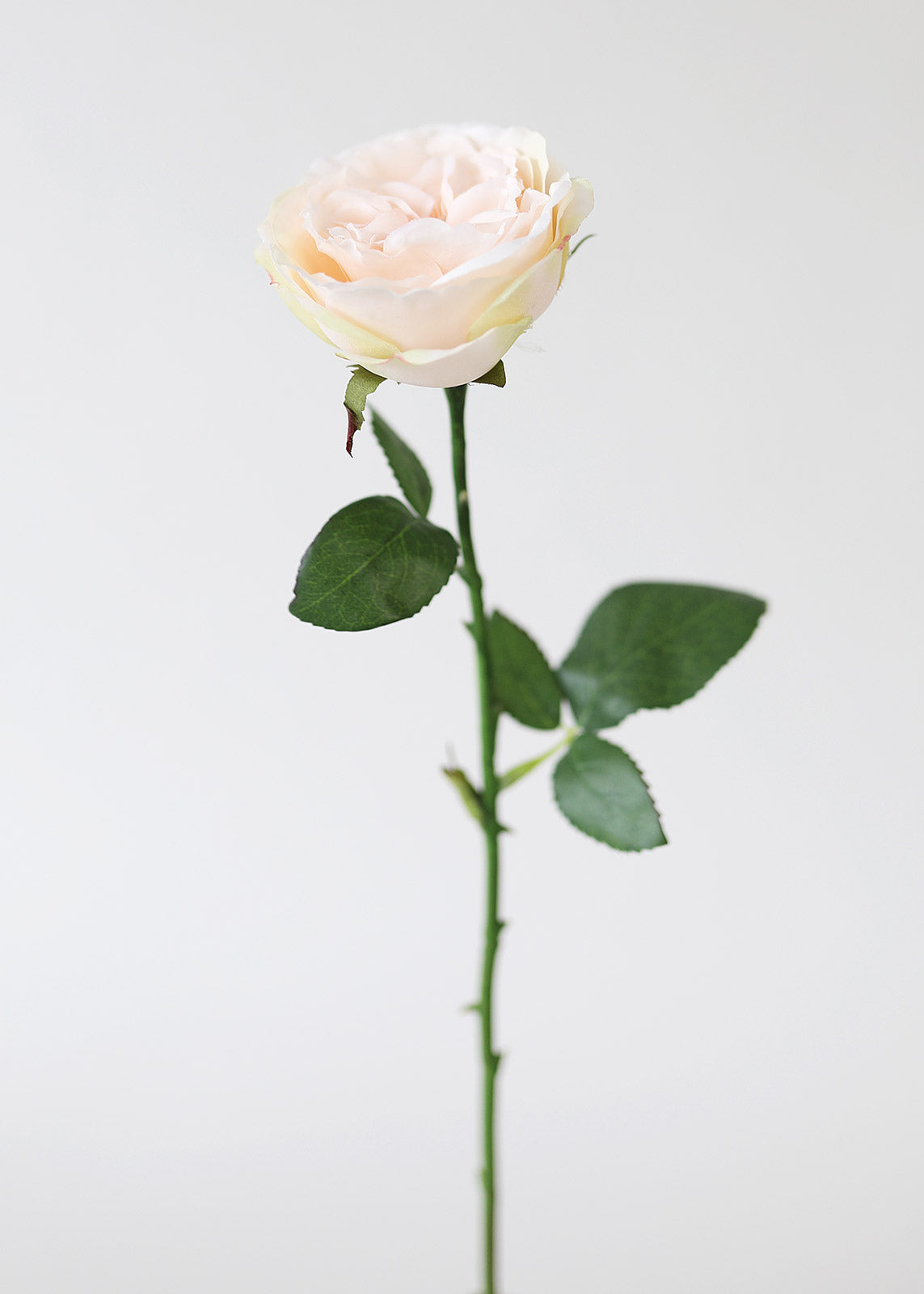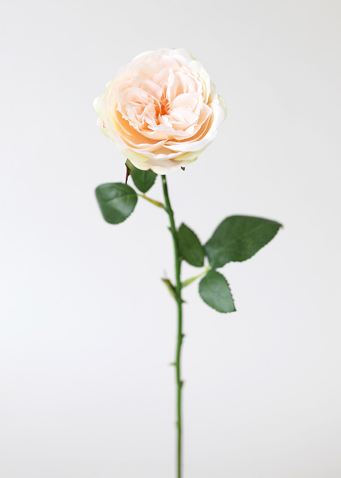 Include a feminine touch to any faux floral arrangement or bouquet with this gorgeous peach artificial English cabbage rose. This peachy-pink rose is the perfect playful pastel to help you incorporate a little soft color regardless of the season.
