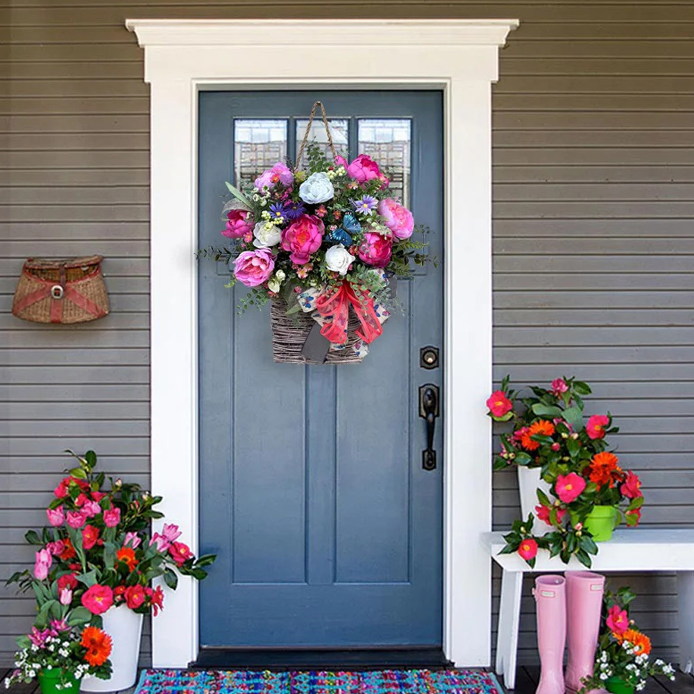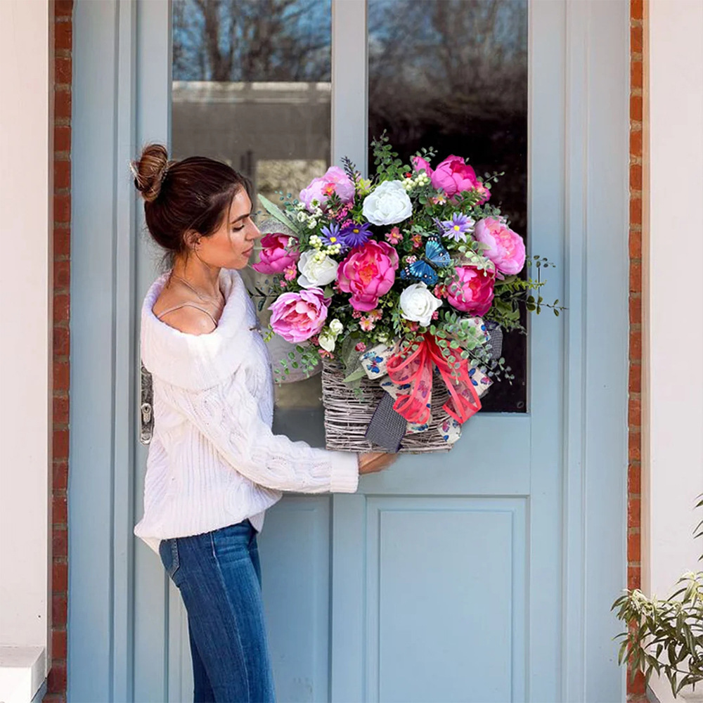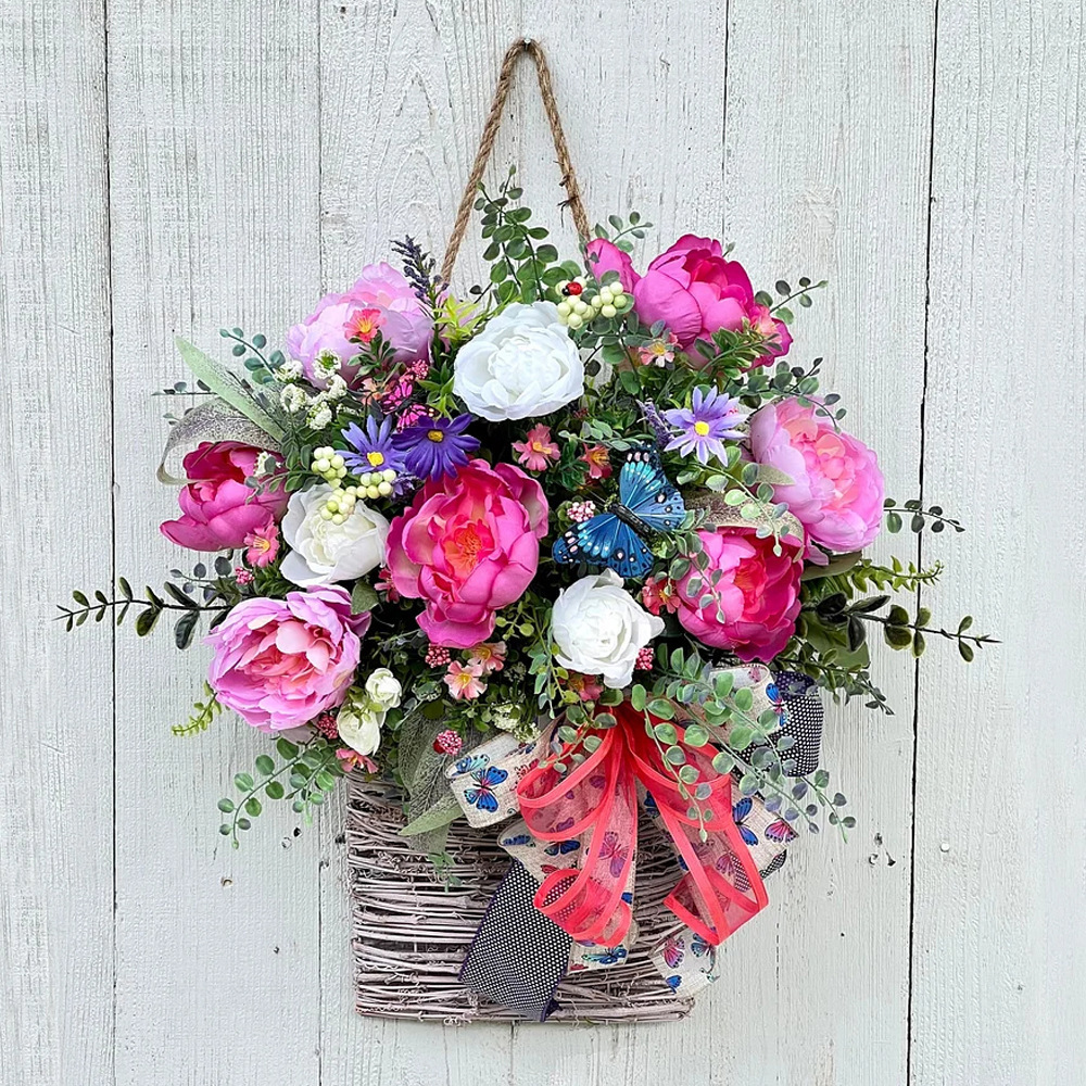 Variety Of Decoration Options:this flower basket is perfect for a variety of decoration options! Decorate your front door, entryway, or bring indoors to enjoy a basket of bright flowers and petite butterflies and ferns.