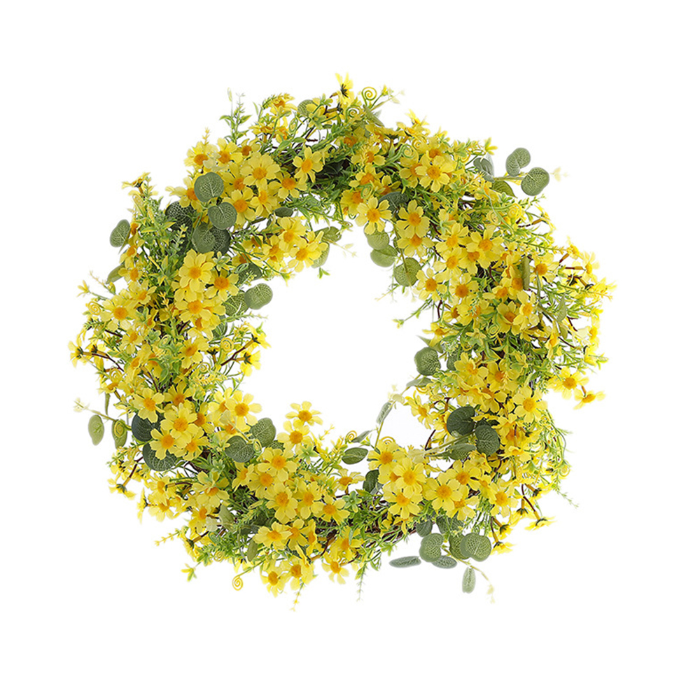 High simulation:this lifelike rattan wreath product wraps beautiful yellow winter jasmine flowers like an exquisite bouquet. Full of spring breath.