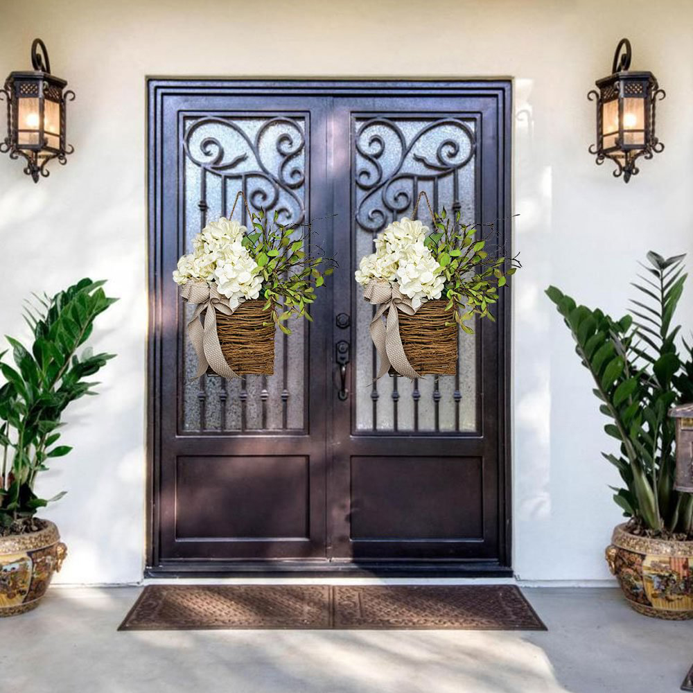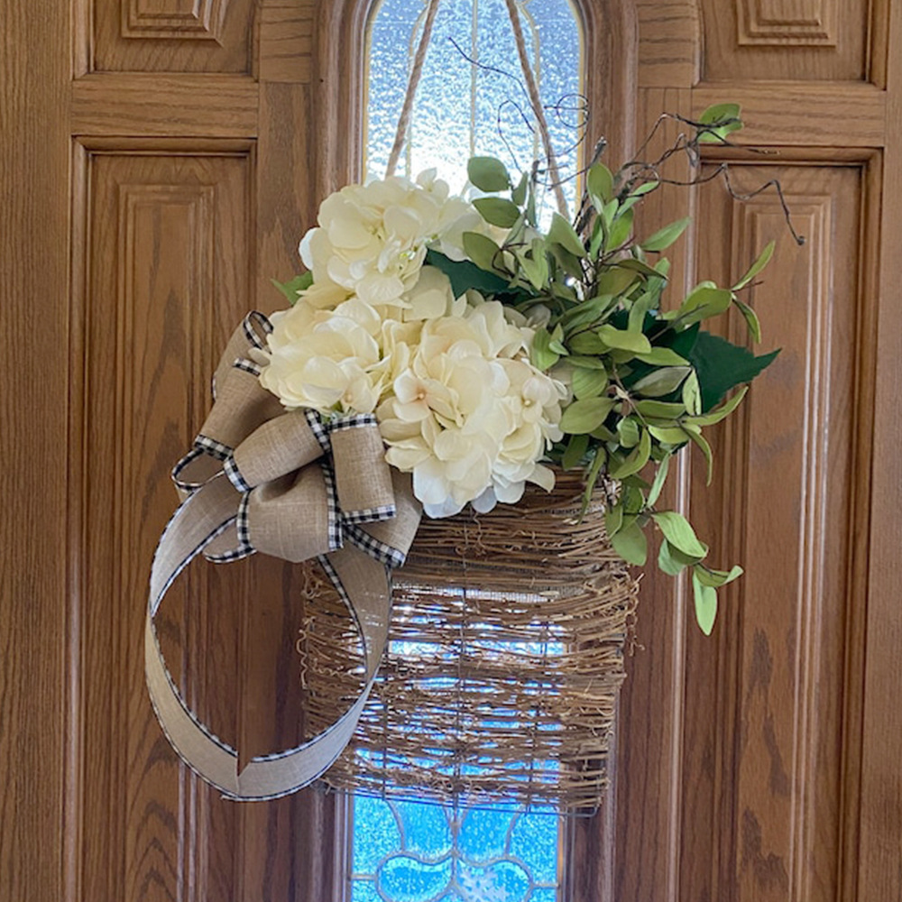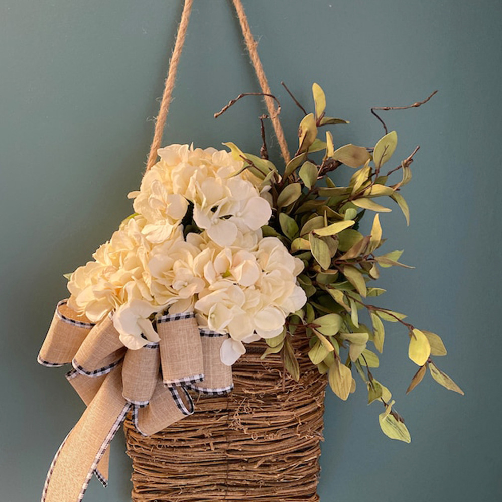 - Variety Of Decoration Options: this flower basket is perfect for many decoration options! Decorate your front door, entryway or bring indoors to enjoy a basket of lush creamy herb hydrangeas and petite white paper flowers, mint leaves and ferns.