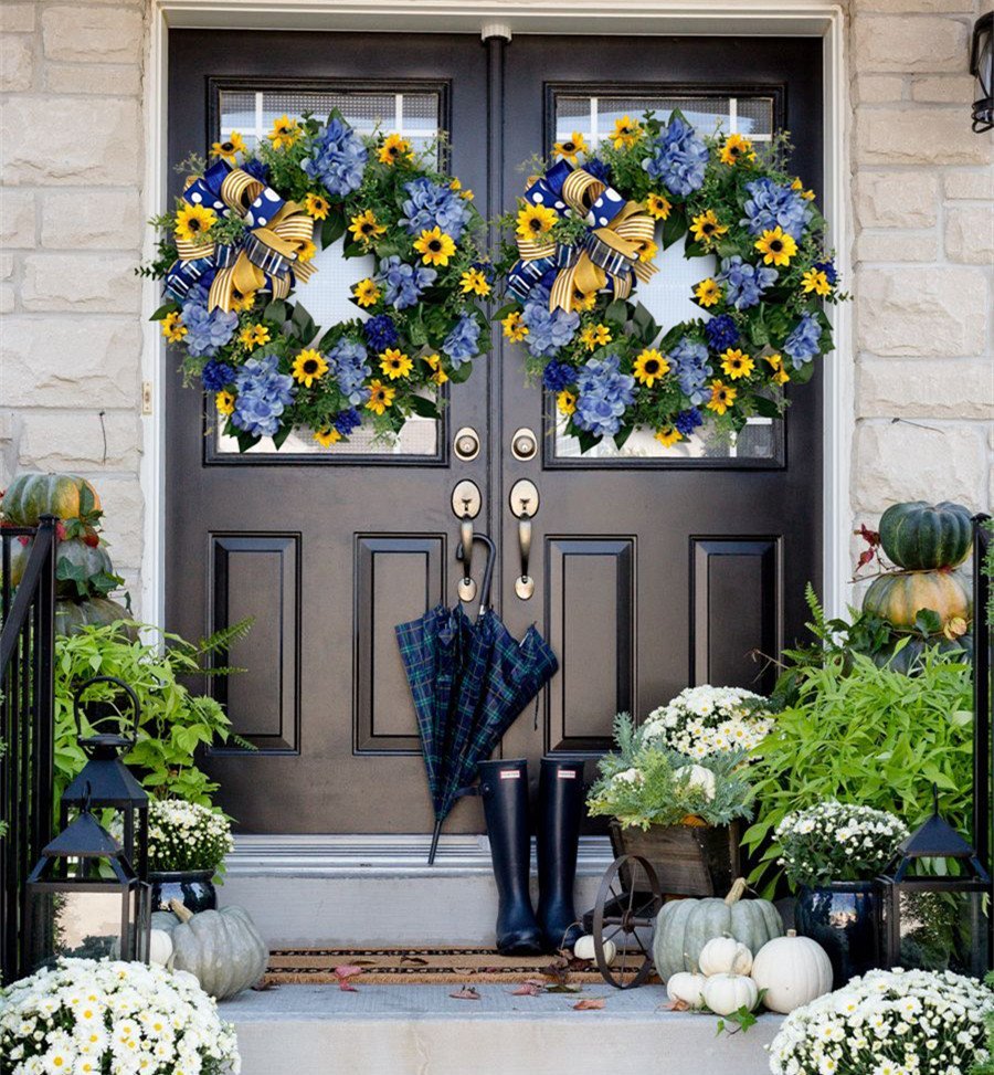 🌞This blue and yellow Sunflower and Hydrangea wreath done in the colors of the Countries that are suffering from war and misery can be hung on your front door to show your solidarity with This tragedy.