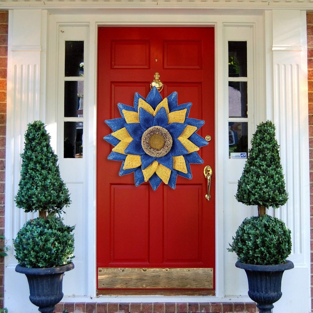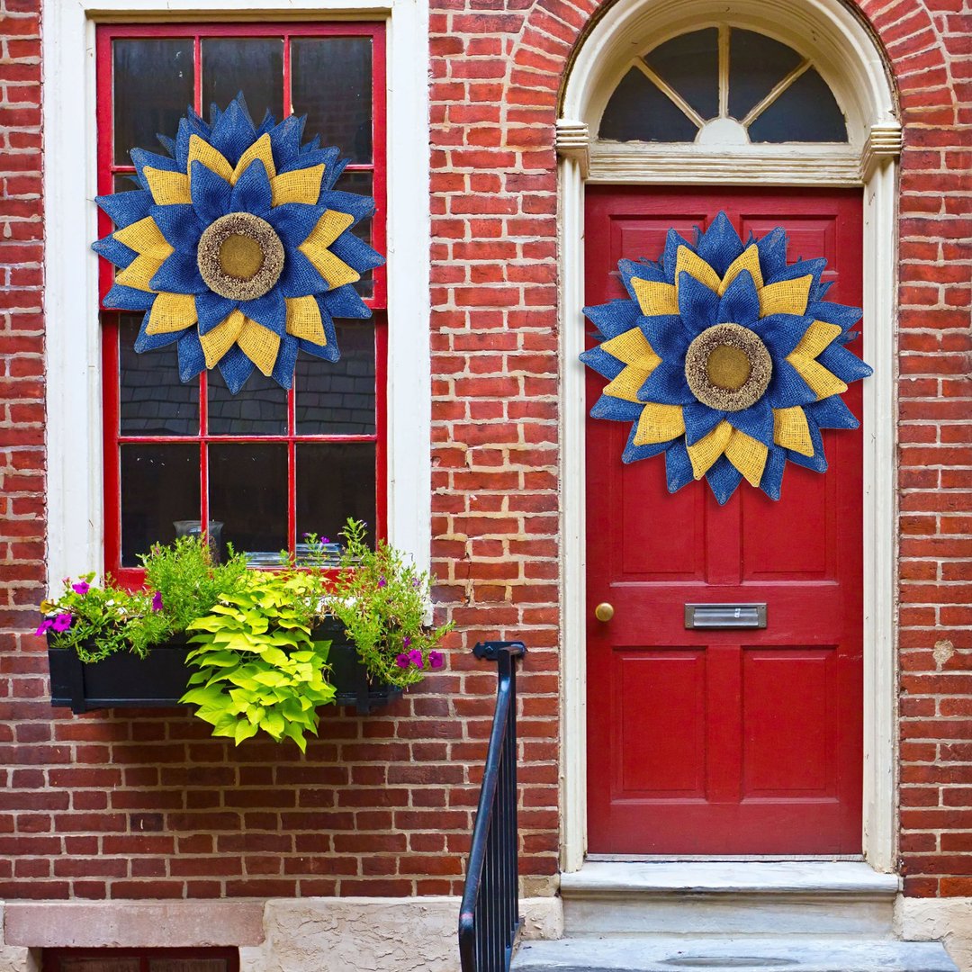 🌞This blue and yellow sunflower flower wreath done in the colors of the the invaded country can be hung on your front door to show your solidarity with the invaded country.😔😔😔Show your support for the the invaded country and everybody involved in this tragic set of events. Praying for the invaded country 🙏🏾💛💙🇺🇦